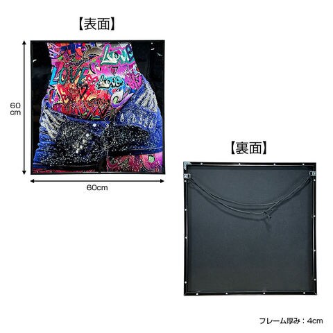 水晶パネル アートパネル 60×60cm ポップアート 黒フレーム付き クリスタル シルバー 絵 イラスト おしゃれ 高級感 KH872 -ART