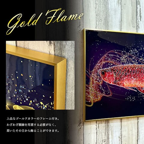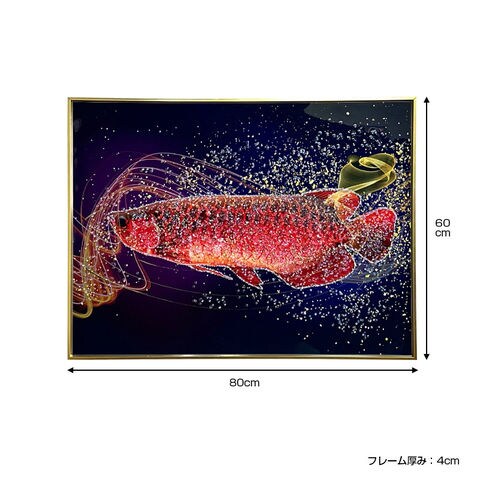 水晶パネル アートパネル 60×80cm アロワナ 金フレーム付き クリスタル シルバー 絵 イラスト おしゃれ 高級感 NT630 -ART