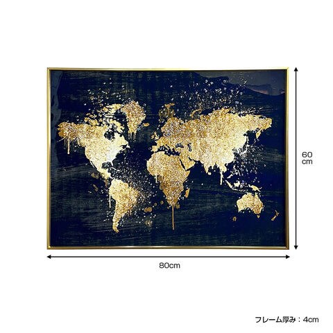 水晶パネル アートパネル 60×80cm 世界地図 金フレーム付き クリスタル シルバー 絵 イラスト おしゃれ 高級感 KH1082 -ART