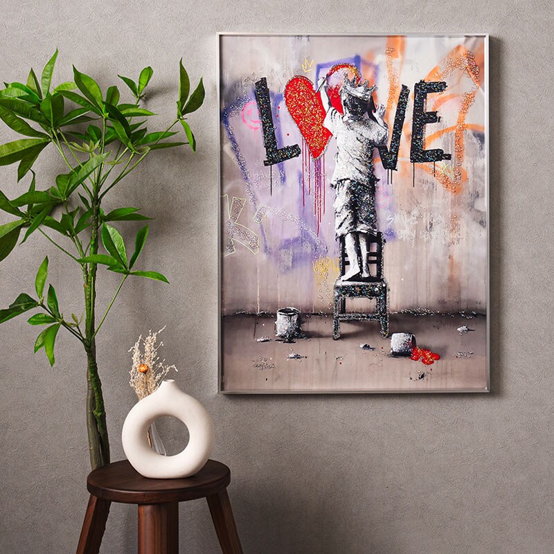 水晶パネル アートパネル 60×80cm ポップアート 銀フレーム付き クリスタル シルバー バンクシー 王冠 子供 KH3181 -ARTのレビュー