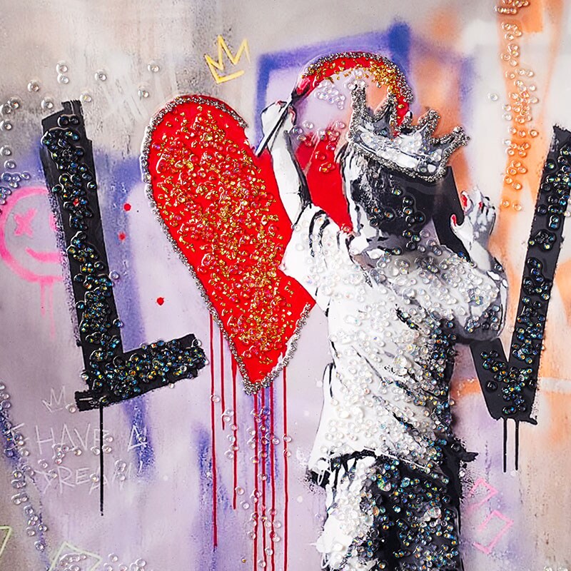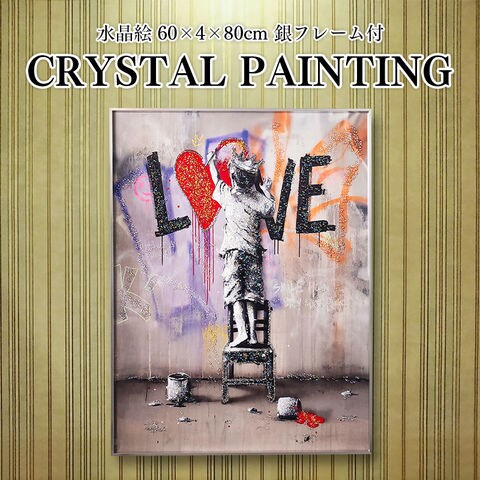 水晶パネル アートパネル 60×80cm ポップアート 銀フレーム付き クリスタル シルバー バンクシー 王冠 子供 KH3181 -ART