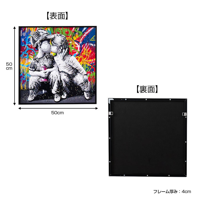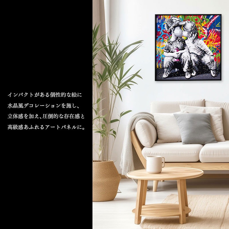 水晶パネル アートパネル 50×50cm ポップアート 黒フレーム付き クリスタル シルバー バンクシー 子供 少女 少年 KH3240A -ART