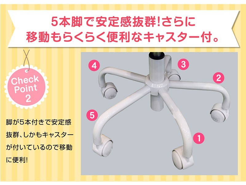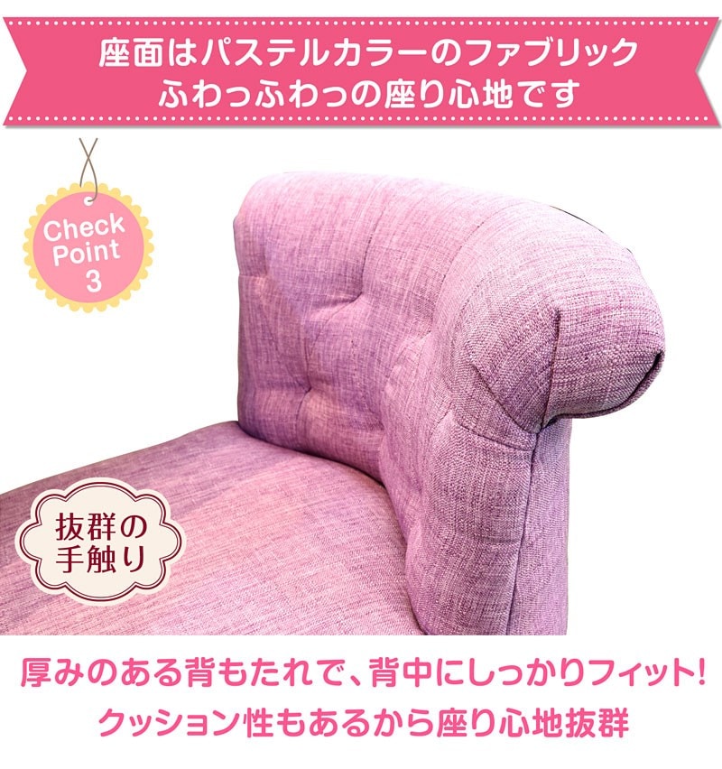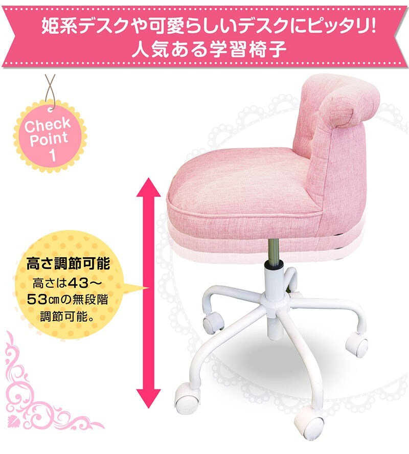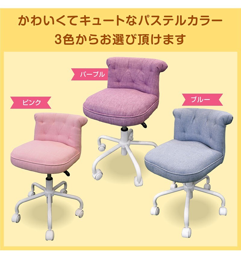 | 特徴 | ・ボリュームの有る背もたれがかわいい学習椅子 ・選べる3色 ・組立品 |