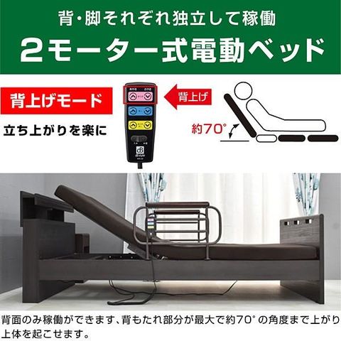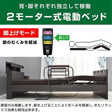 介護ベッド 電動ベッド 2モーター おすすめ 電動ベッド シングルベッド マットレス付 足上げ 腰痛対策 価格 口コミ ランキング 早乙女 / ダークブラウン / -ART