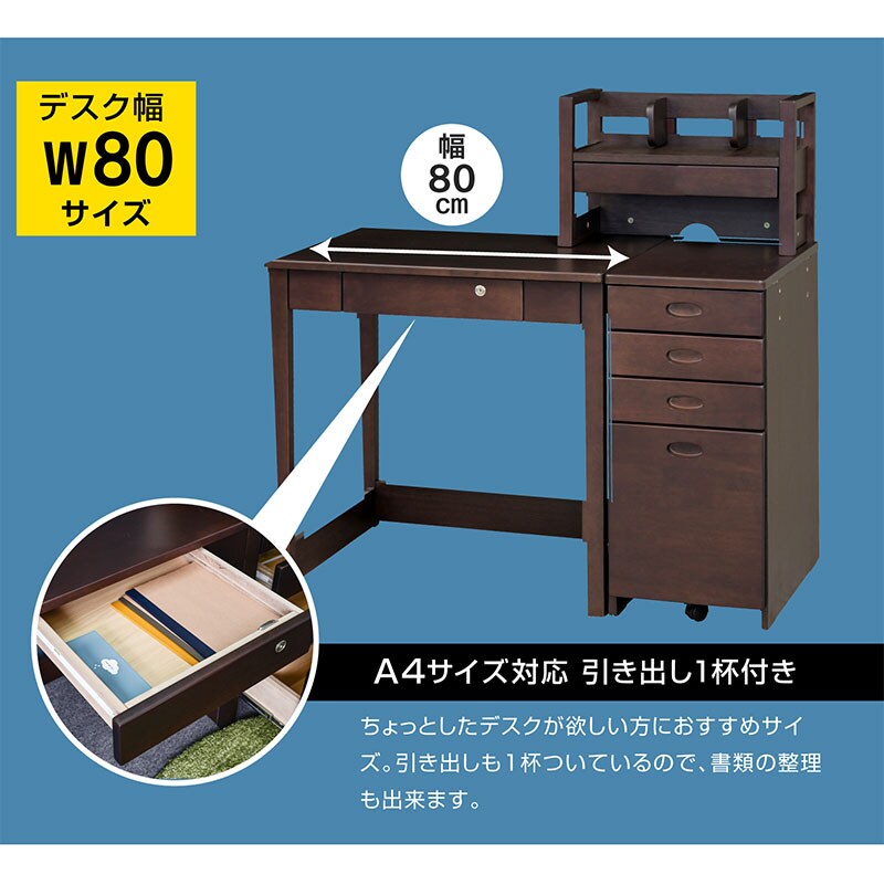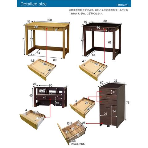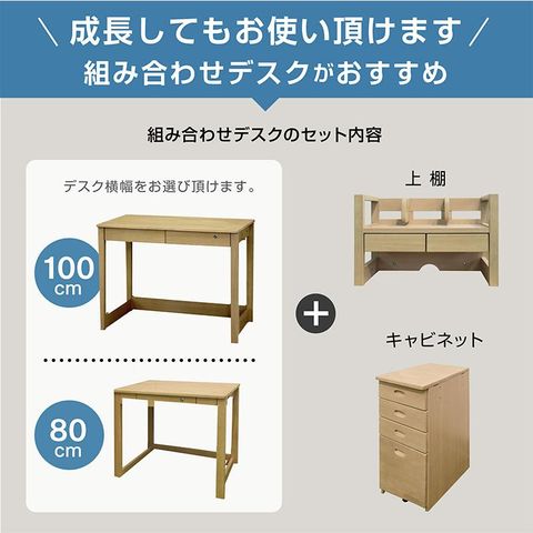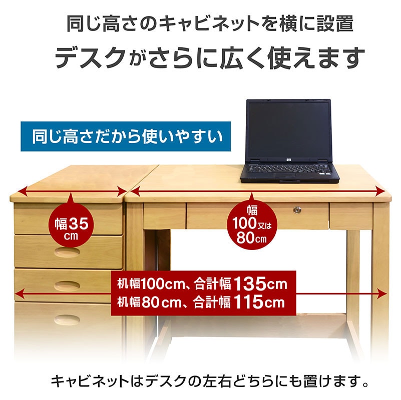 | サイズ(cm) | 【幅80デスク】幅80×奥行60×高さ73【幅100デスク】幅100×奥行60×高さ73 【上棚】幅60×奥行23×高さ40【キャビネット】幅35×奥行60×高さ73 |