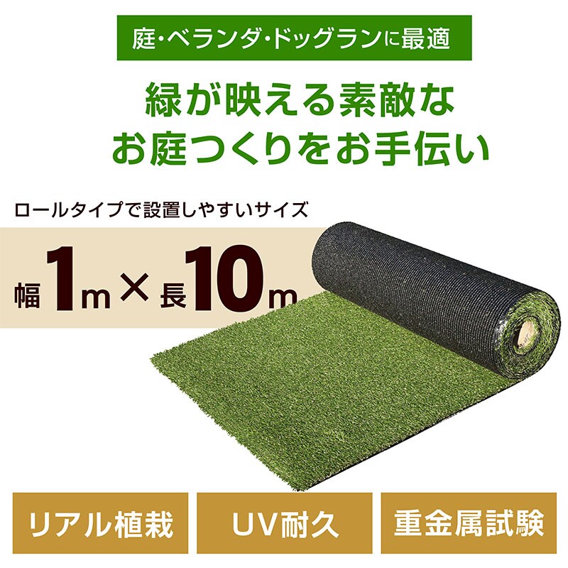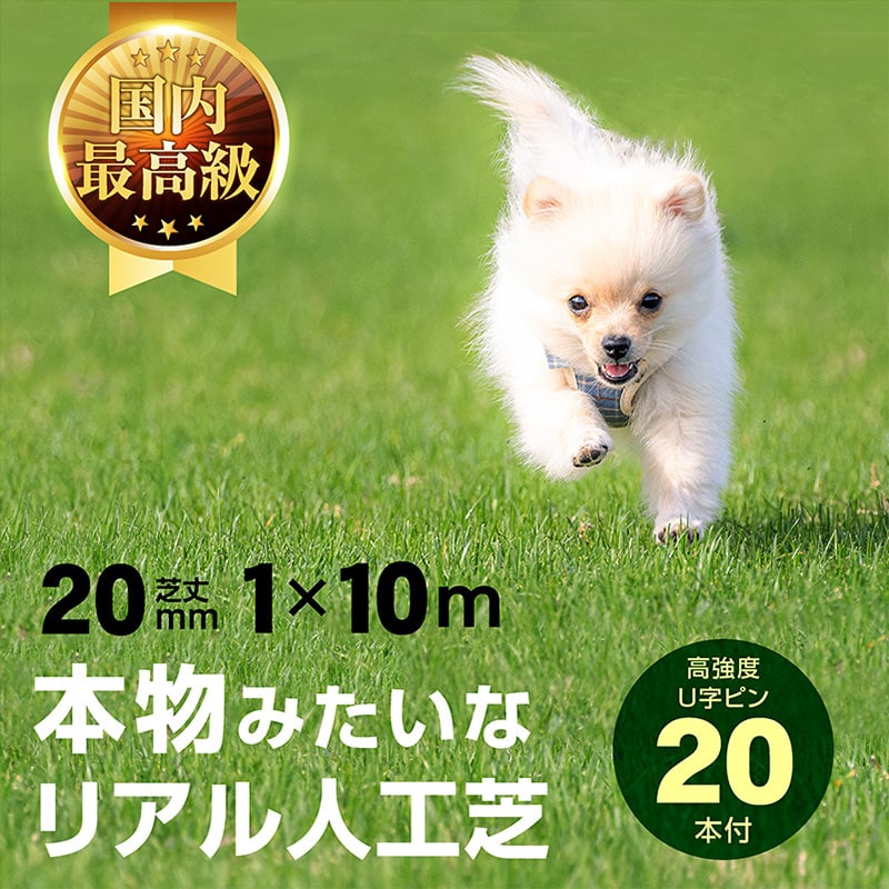 高品質 リアル人工芝 人工芝マット 人工芝 芝生 人工芝生 1x10mロールタイプ 芝丈20 U字ピン付き 防草 雑草対策 メモリーターフ -ART