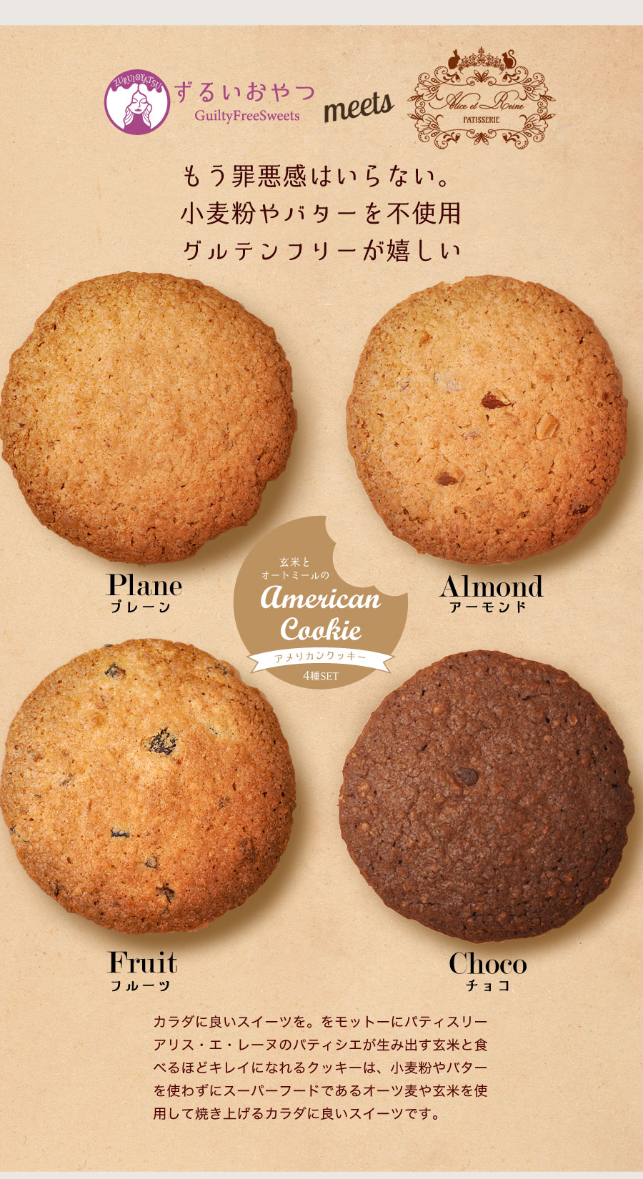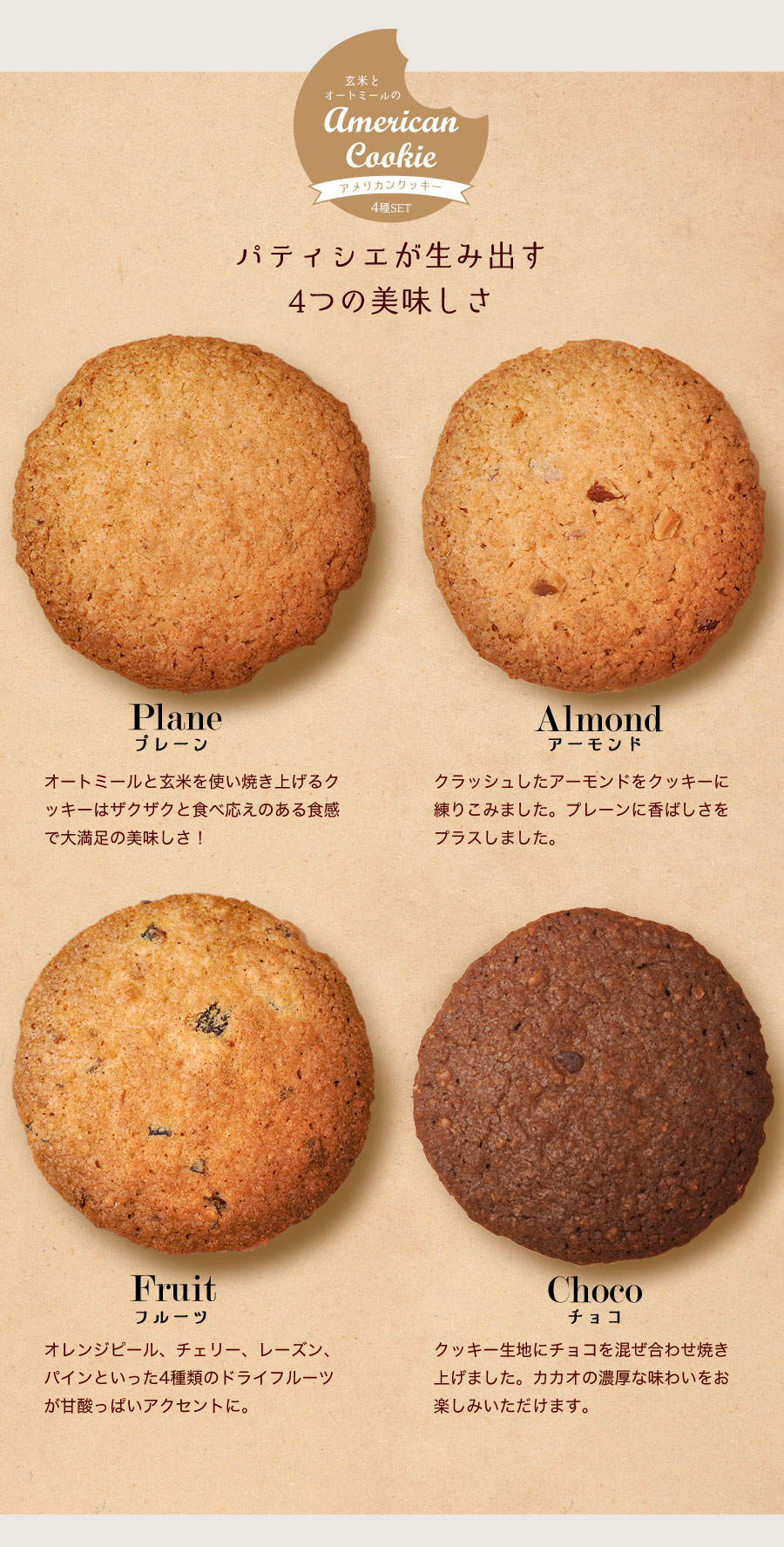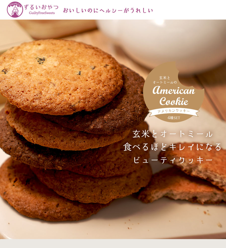 玄米オートミールのアメリカンクッキー4種SET×2箱 グルテンフリー ずるいおやつ ヘルシークッキー スイーツ オートミール お菓子 健康 ごほうび