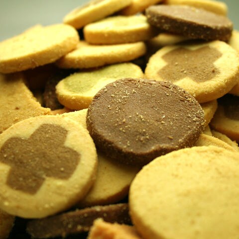 小麦粉(国内製造)、マーガリン、おからパウダー、還元麦芽糖水飴、豆乳、食塩、レーズン、かぼちゃペースト、準チョコレート、アーモンド、マカデミアナッツ、黒ごま、アーモンドパウダー、こんにゃく粉、食用ぶどう油、クロレラ入り抹茶、紅茶、乳加工品、フリーズドライ苺/膨張剤、香料、乳化剤、着色料(紅麹・カロチン)、(一部に小麦・乳成分・卵・アーモンド・ごま・大豆を含む)
