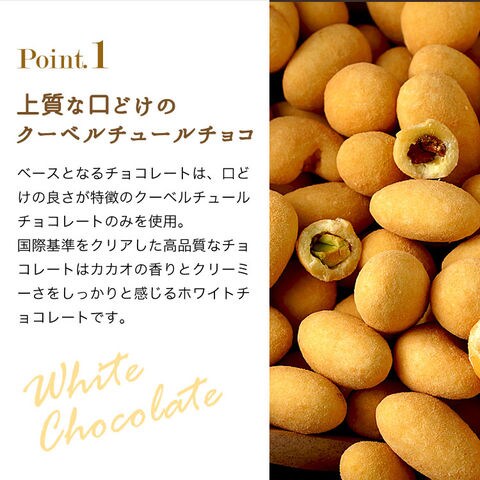 原材料 チョコレート(国内製造(砂糖、ココアバター、乳糖、植物油脂、脱脂粉乳、全粉乳))、ナッツ加工品(アーモンド、ヘーゼルナッツ、カシューナッツ、マカダミアナッツ、ピスタチオ)、キャラメルパウダー/乳化剤(大豆由来)、香料