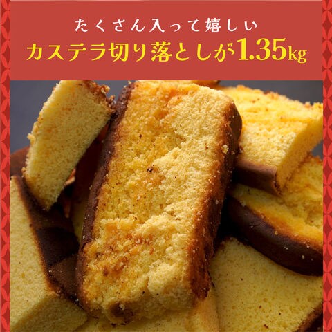 | 昔ながらの長崎カステラ製法で作ったカステラの切り落としを1.35kgお届け。熟練の職人が手作りで作っているため、限られた数のみの限定販売となっています。カステラの製造の際に出る切れ端だからこそのお買い得商品です。 |