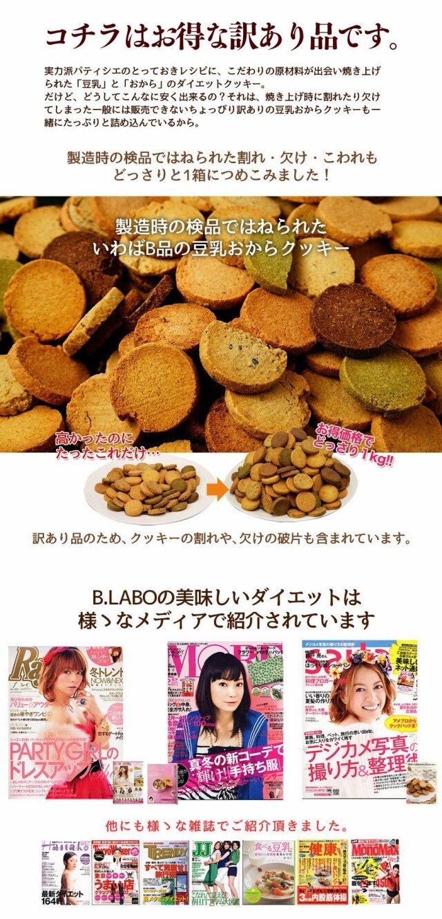 訳あり豆乳おからクッキー1kg 冬の豆乳おからクッキー ビーラボ