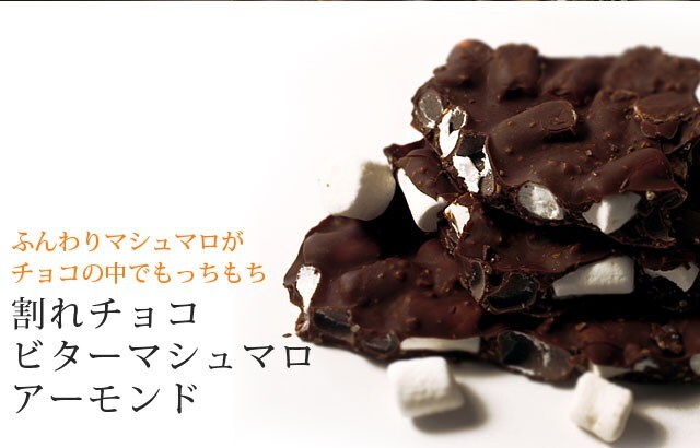 もちもち感がたまらない♪ほろ苦ビターチョコレートの口どけとマシュマロのモチモチ感が新たな食感を生み出しました。