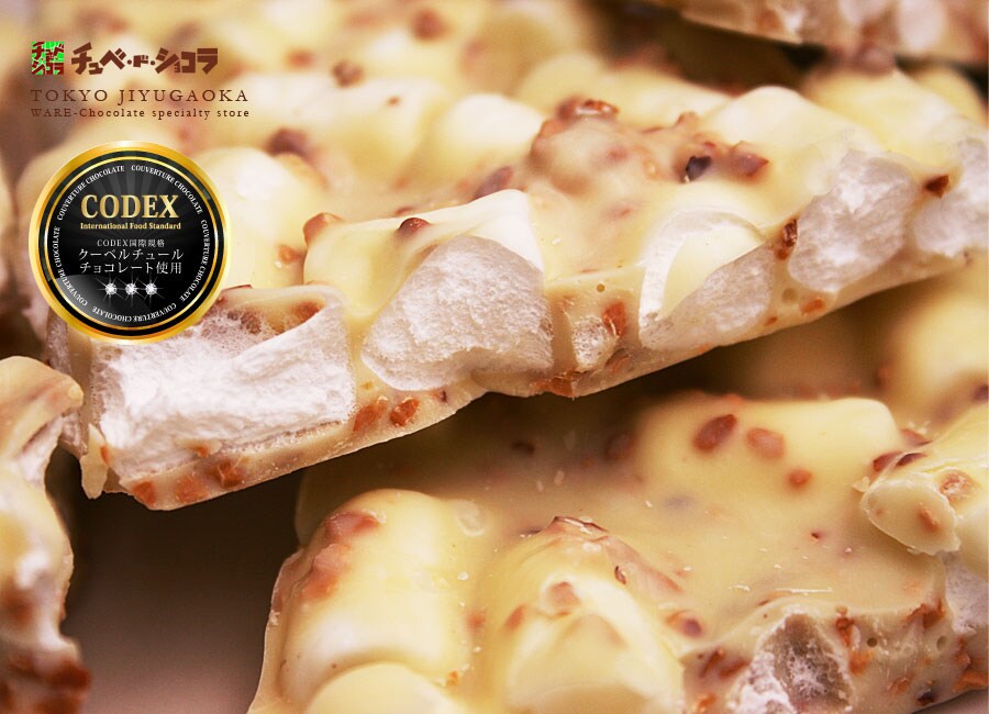 国内の一般的なチョコレートは、このカカオバターの代わりに食物性油脂を使用していることがほとんどです。国際基準のクーベルチュールチョコレートは、「総カカオ固形分35%以上、カカオバター31%以上、無脂カカオ固形分2.5%以上、カカオバター以外の代用油脂は使用不可」など規定があります。チュべ・ド・ショコラの割れチョコは、このCODEX国際規格をクリアした純粋なクーベルチュールチョコレートのみを使用しています。