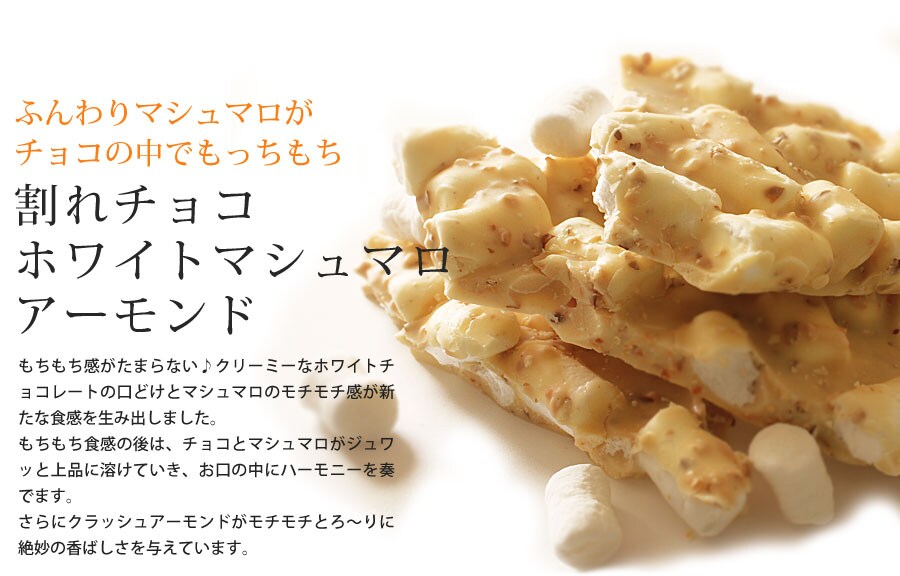 もちもち感がたまらない♪クリーミーなホワイトチョコレートの口どけとマシュマロのモチモチ感が新たな食感を生み出しました。