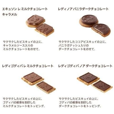 ゴディバのロゴやエンブレムが美しく刻まれたチョコレートビスキュイは、気品と華やかさを兼ね備え大切な人への贈りものにも好適です。