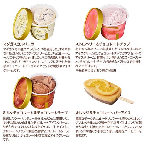 ゴディバがお届けするチョコレートを楽しむアイスをバラエティ豊かに詰め合わせました。