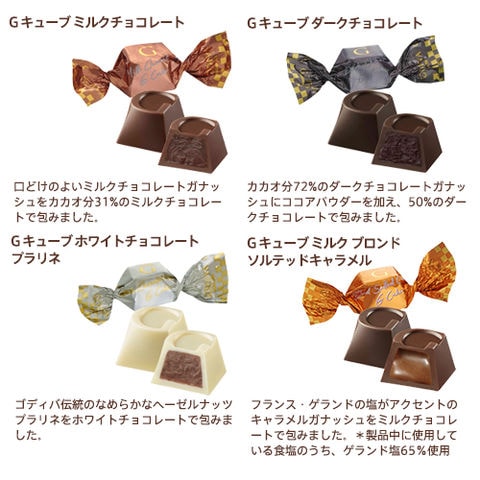 ホリデーシーズンの幸せに包まれたファミリークリスマスを描いたミニサイズのショッパーに、5種類のG キューブを詰め合わせました。 ミルク、ダーク、ホワイトチョコレートプラリネ、ミルクブロンドソルテッドキャラメル、ダークルビーストロベリームースと、5種類のフレーバーを食べ比べていただけるのも魅力です。