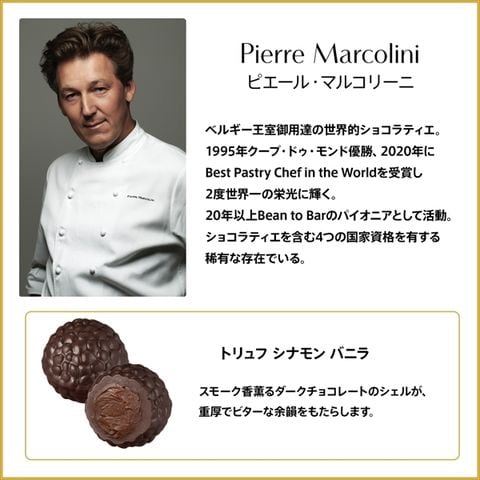 ゴディバの創立100周年を祝して、世界の舞台で活躍するスターシェフ5人がカカオへの深い敬愛を込め、それぞれの感性で創り上げた限定トリュフが誕生しました。ひと粒ごとにそれぞれのスターシェフの感性輝く、カカオの深い味わい。それらを、真っ黒な黒トリュフのようになシックな箱に詰め、特別な10粒のアソートとしてお届けします。