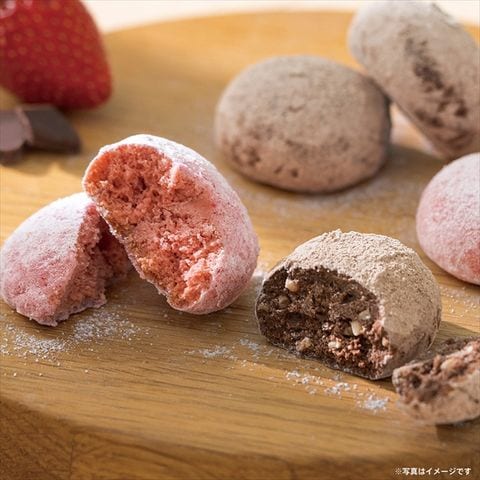 「ストロベリー」では周りにまぶしたストロベリーパウダーできゅっとした酸味と華やかな香りの後に、生地に練り込んだホワイトチョコレートの甘~い香りが広がります。