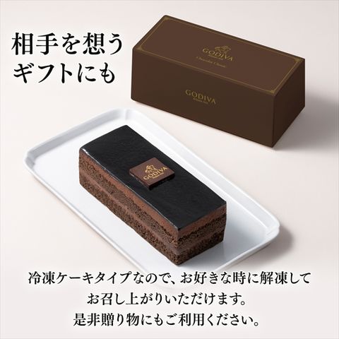 ゴディバのシェフが、チョコレートの奥深い味わいと食感の絶妙なハーモニーにこだわって仕上げた、シンプルかつ洗練されたチョコレートケーキです。