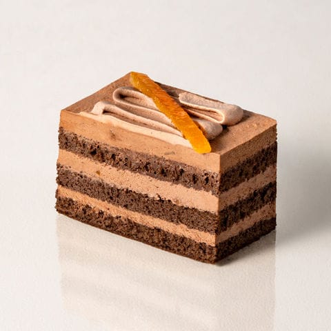 ベルギー産チョコレートを練り込んだサシェ風スポンジと、オレンジピールをアクセントにしたクリームを重ねました。天面には存在感のあるオレンジピールをトッピングすることで、爽やかな柑橘の香りがチョコレートのコクと重なり、華やかな味わいを演出します。