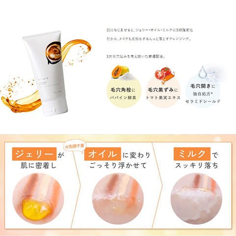 ジェリー・オイル・ミルクと3段階に変化しながら、メイクや汚れをすっきり落とします。