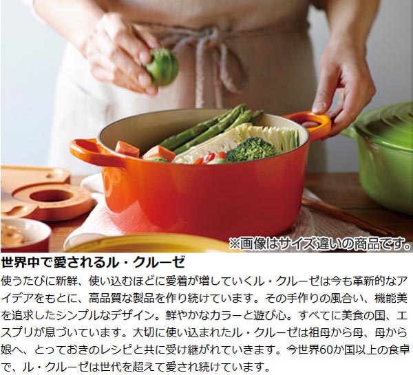 ![]() 美味しく彩るデザイン 「キッチンからテーブルまで」をコンセプトにテーブルウェアをトータルにコーディネートできるル・クルーゼ。色味が沈みがちな和の食卓も、鮮やかなビタミンカラーと交えることで、躍動感を引き出すことができます。 | ![]() サイズ違いや形違いもございます。 当店ではサイズ違い、色、形違いのル・クルーゼをご準備しておりますので、良かったらご覧ください。各種お祝いごとのプレゼントにもおすすめです。 | |