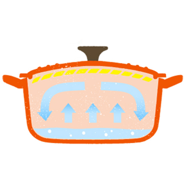 ![]() 旨味をしっかりと閉じ込める重いフタ 重いフタは蒸気を逃しにくく、ふきこぼれしにくいので、素材の旨味や栄養を十分に引き出すことができます。 | ![]() 料理の美味しさを引き立てる保温性 保温性に優れているので、料理が冷めにくく、温かい料理の美味しさを引き立てます。また弱火で調理ができるのでエコにも繋がります。 | |