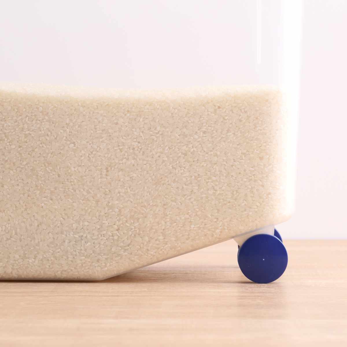 後ろにはキャスターが付いているので、重たいお米もラクに引き出せます。