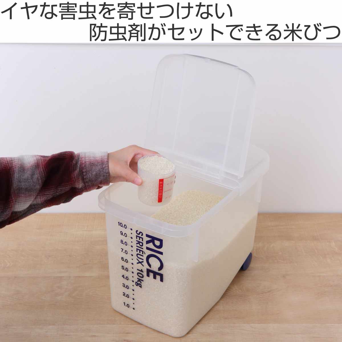 米びつ 防虫米びつ 10kg用 ( 10kg 計量カップ付き キャスター付き 無洗米対応 ライスボックス 米櫃 こめびつ 米 お米 保存 保管 無洗米 対応 防虫 ライスストッカー 米ストッカー コメビツ 目盛り 防虫効果 虫除け お米収納 防虫剤 )