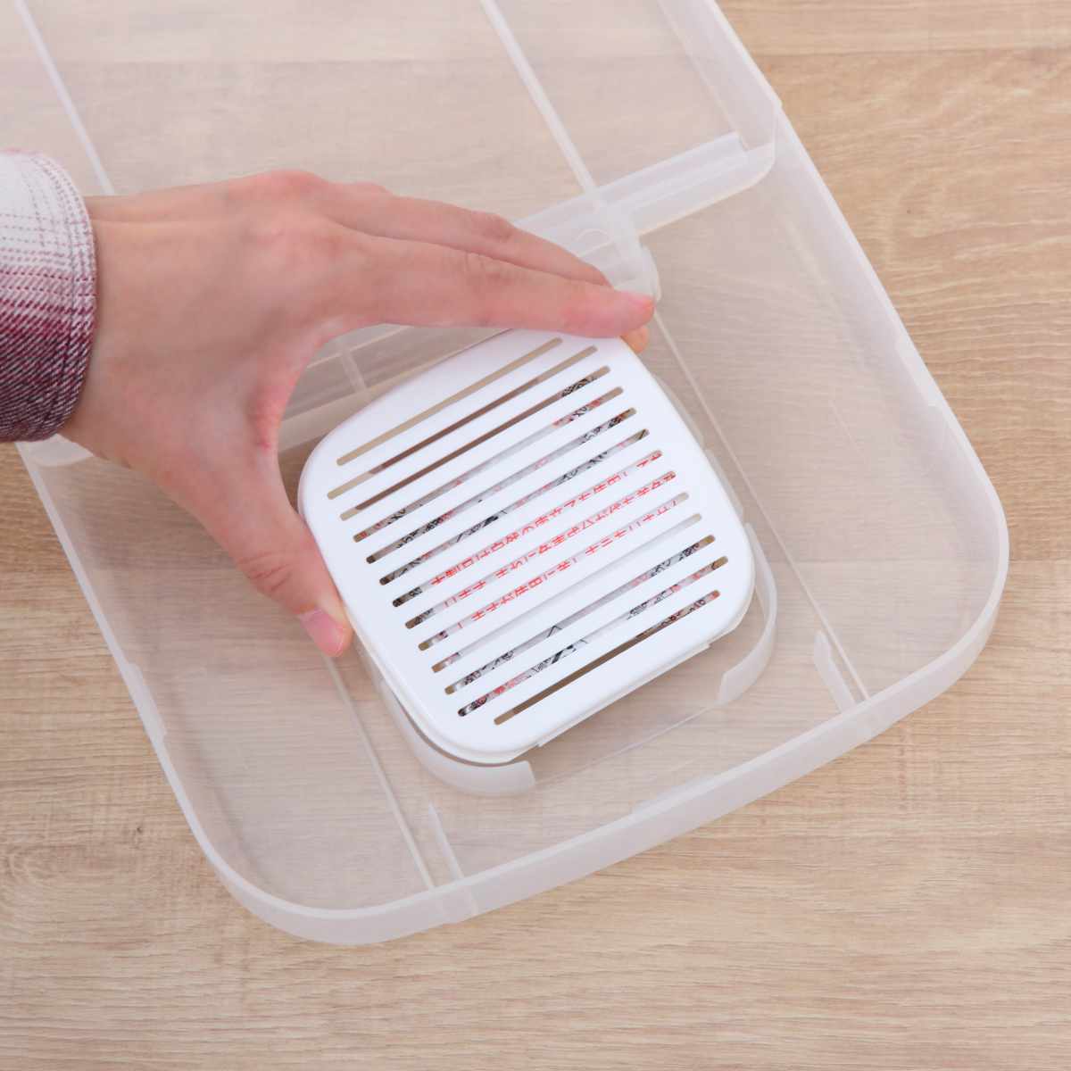 フタの裏側に防虫剤をセットできるケースが付いています。防虫剤は市販の物もご使用になれます。