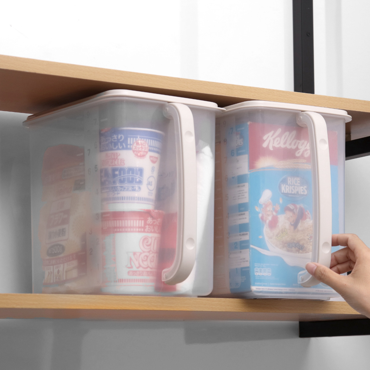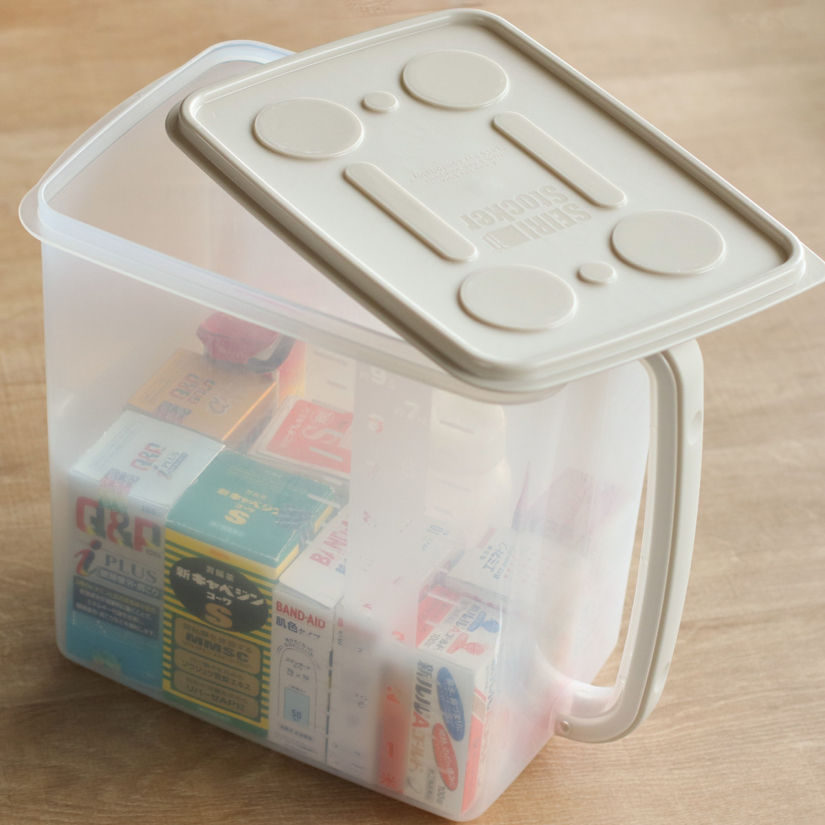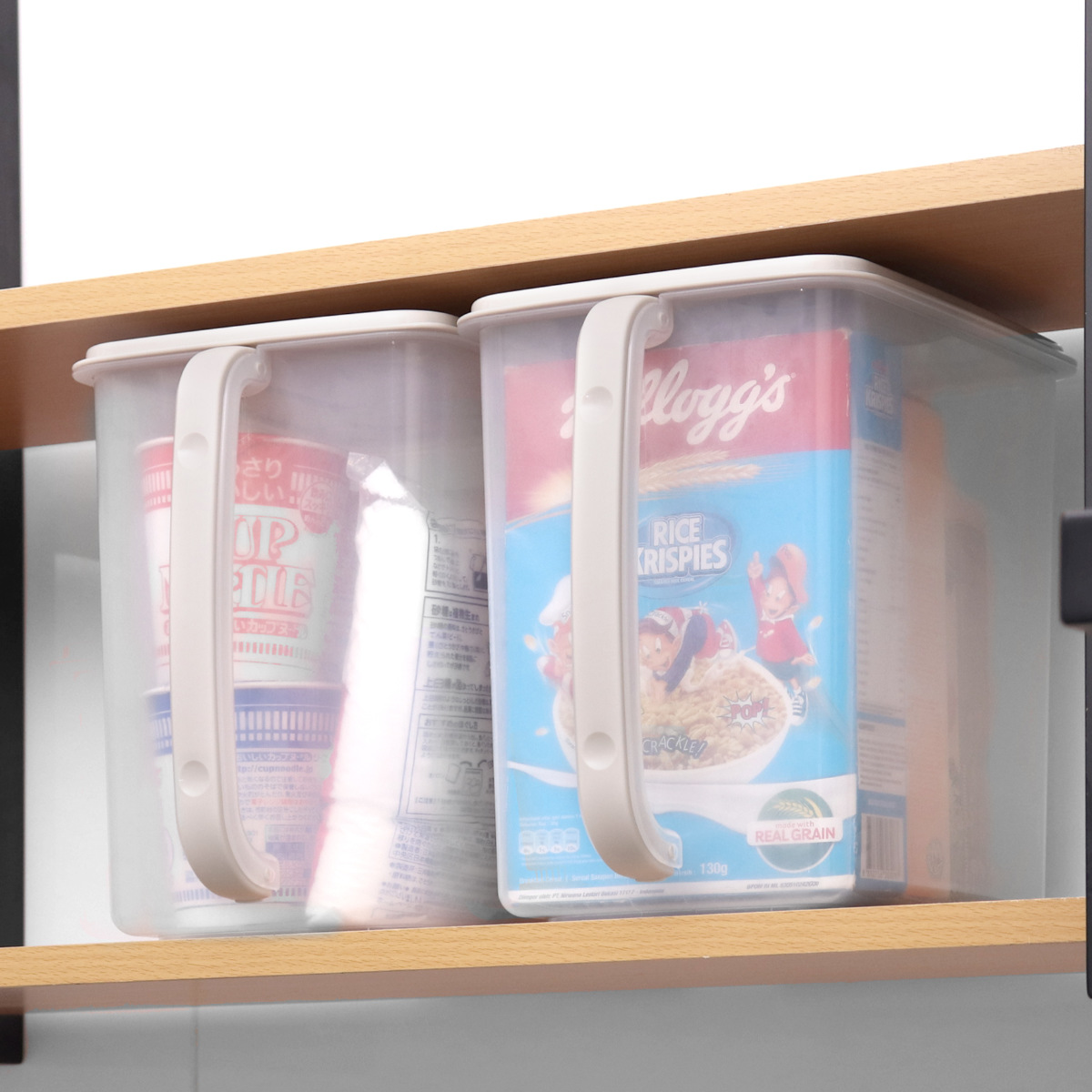 ストック用品などの収納に便利な整理ストッカーです。ケースが透明なので、吊戸棚に収納しても中に何が入っているか一目でわかり、迷わずサッと取り出すことができます。握りやすい大きな取っ手が付いているので、取り出しやすいです。