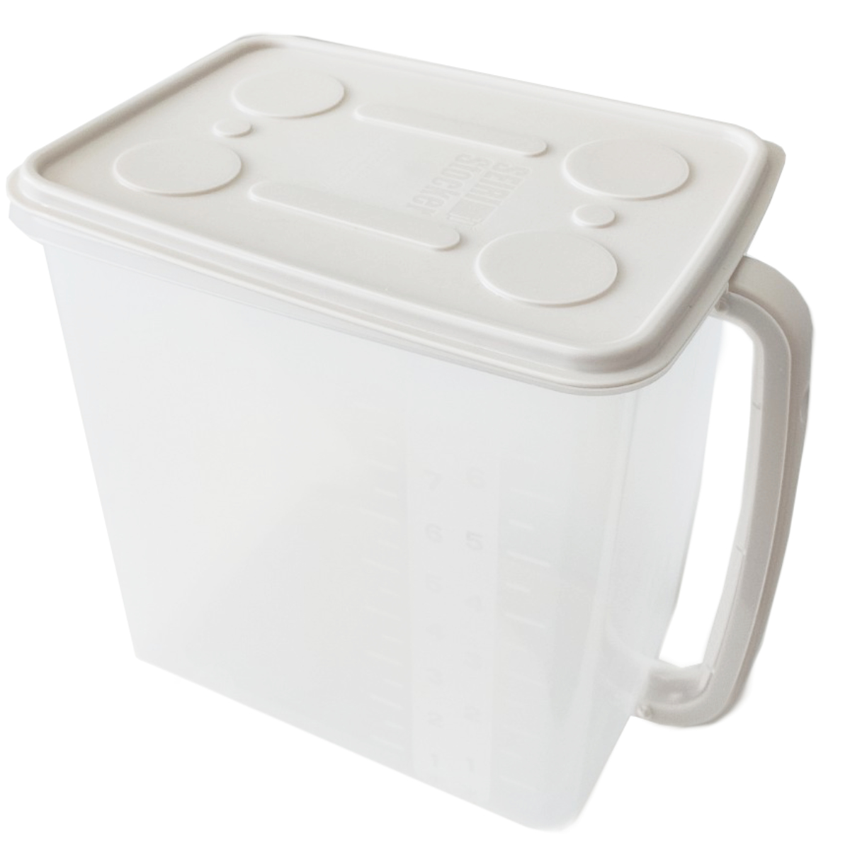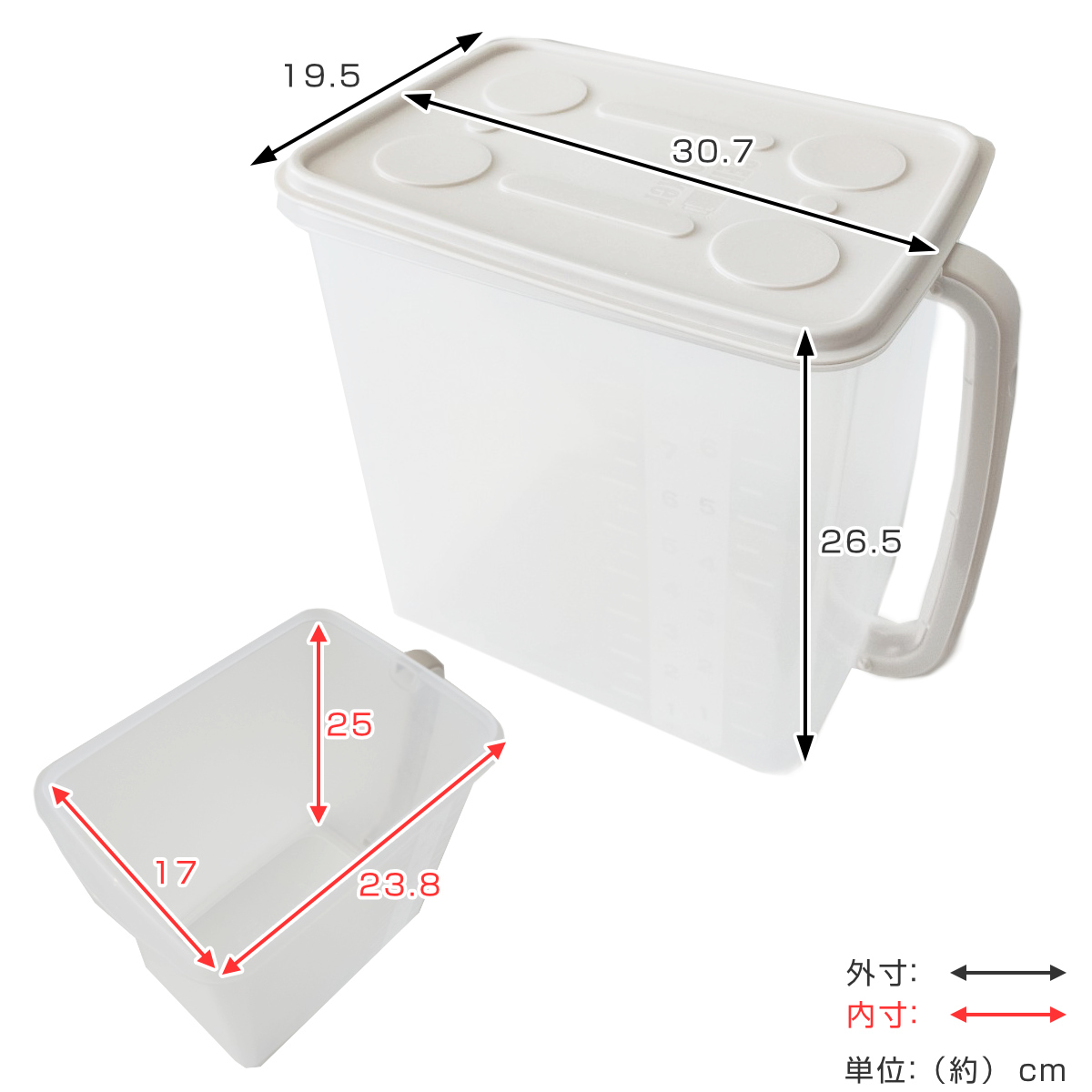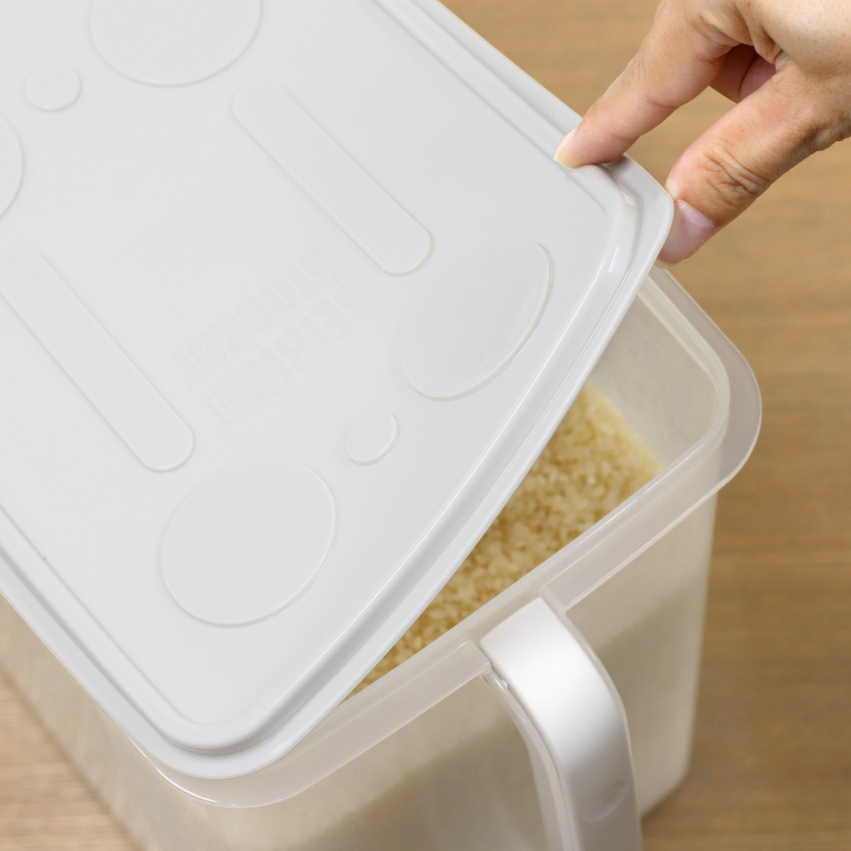 米と水の容量がわかる目盛りが付いています。虫やホコリの侵入を防ぐフタ付きなので、乾物などの保存にもぴったりです。