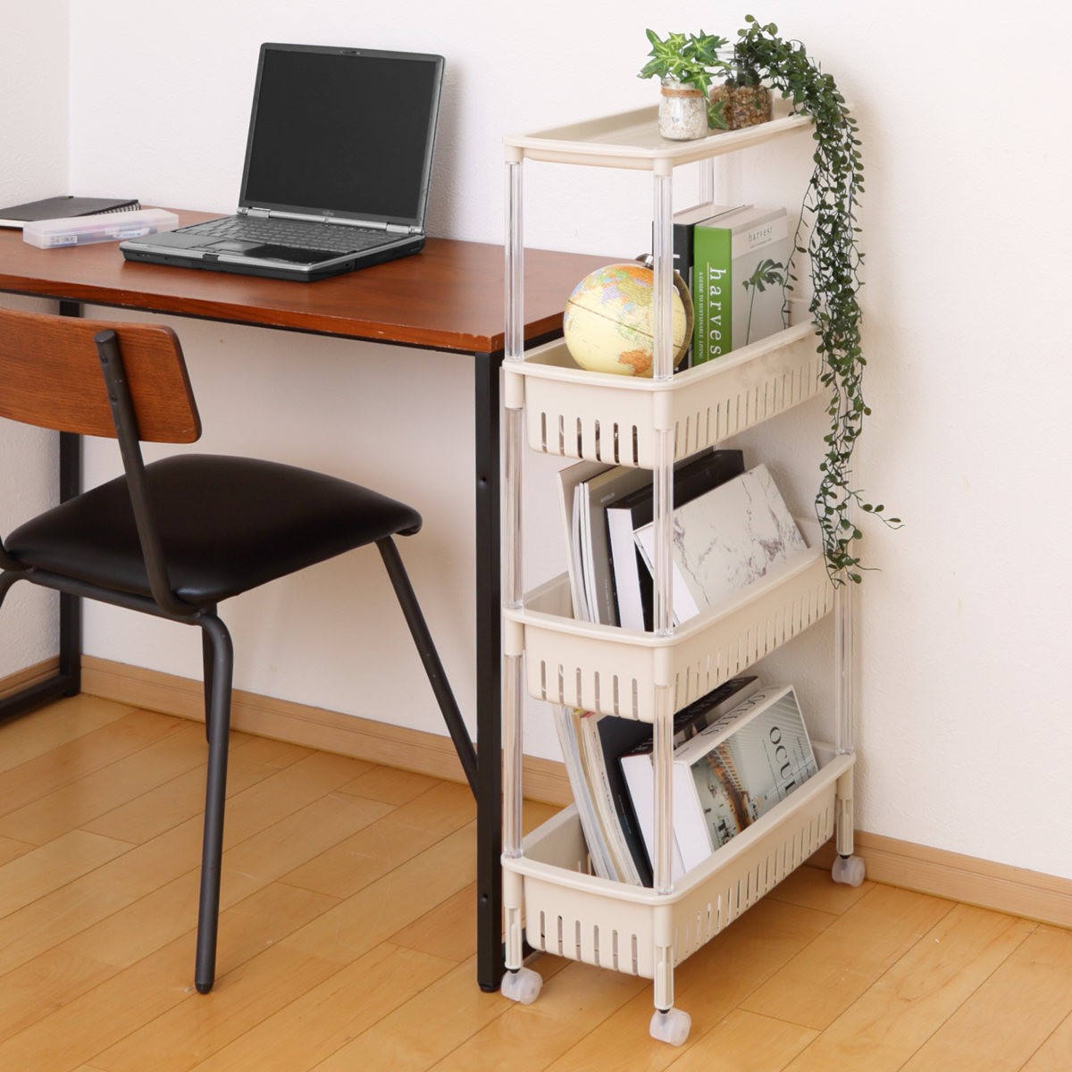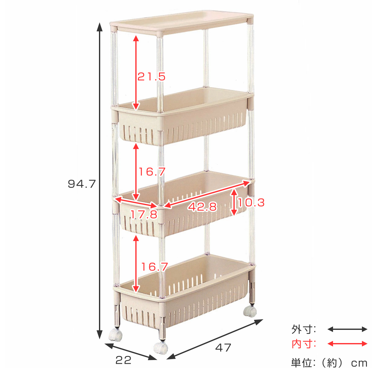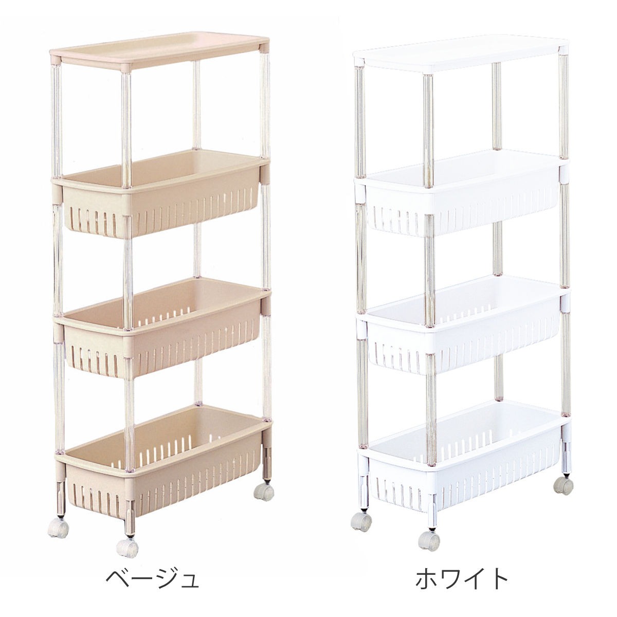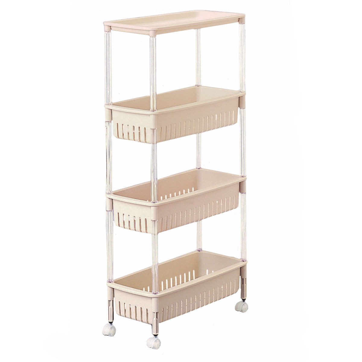 キッチンワゴン ルーチェワゴン 4段 幅22cm 奥行47cm 高さ94.7cm ( キャスター付き 天板付き キッチンストッカー 日本製 マルチワゴン キッチンラック ワゴン ラック 収納 ワゴン収納 バスケットワゴン キッチン 洗面所 四段 ) 【ベージュ】