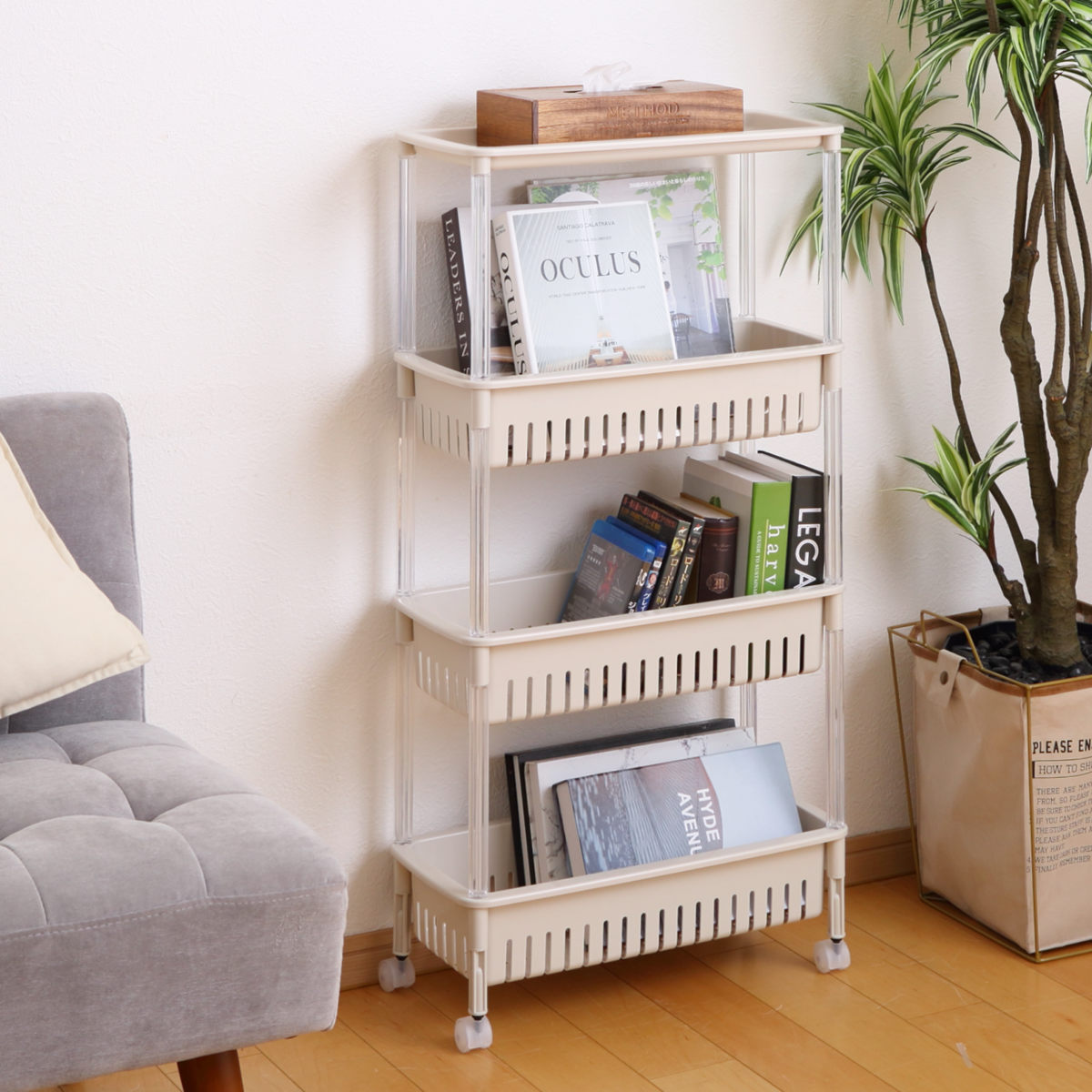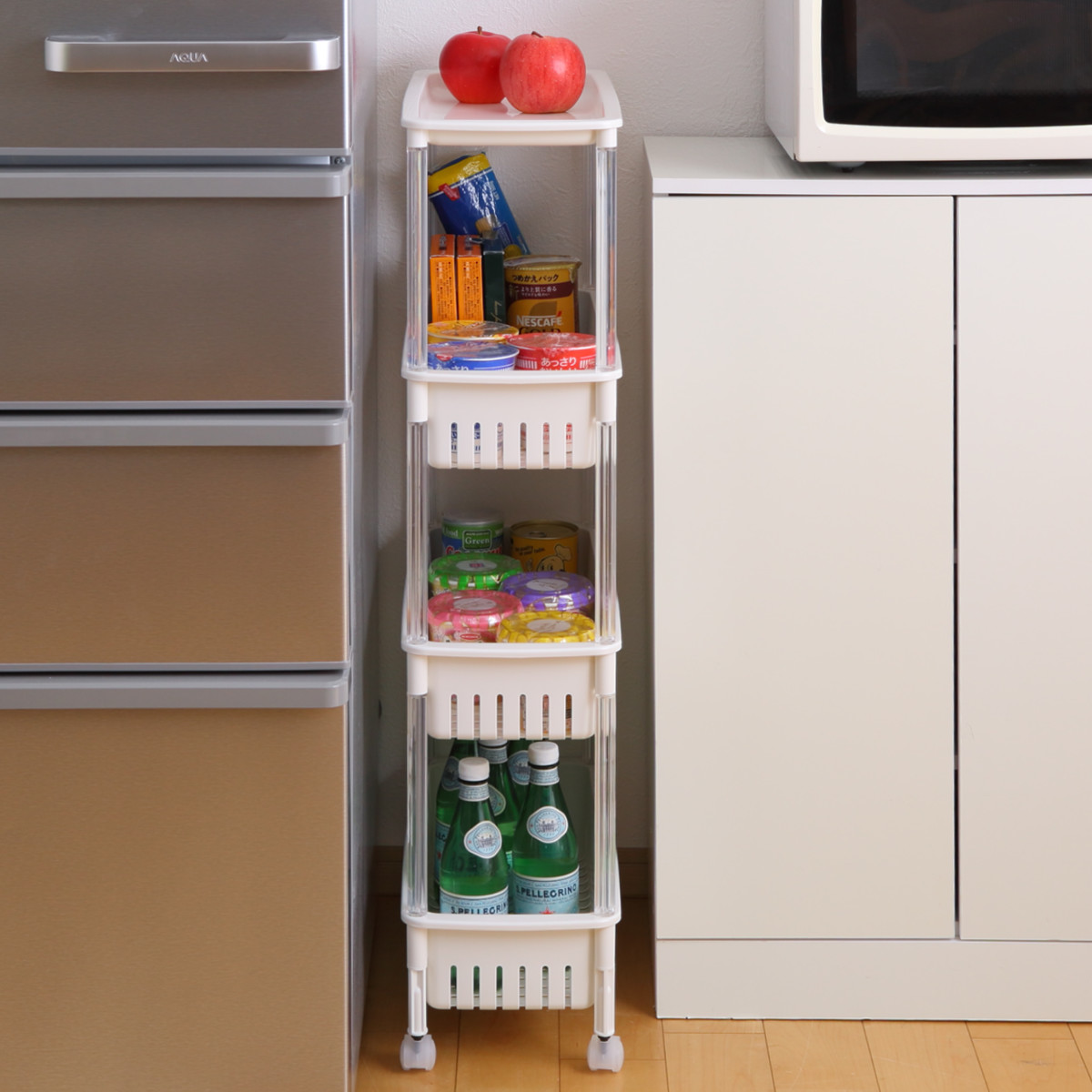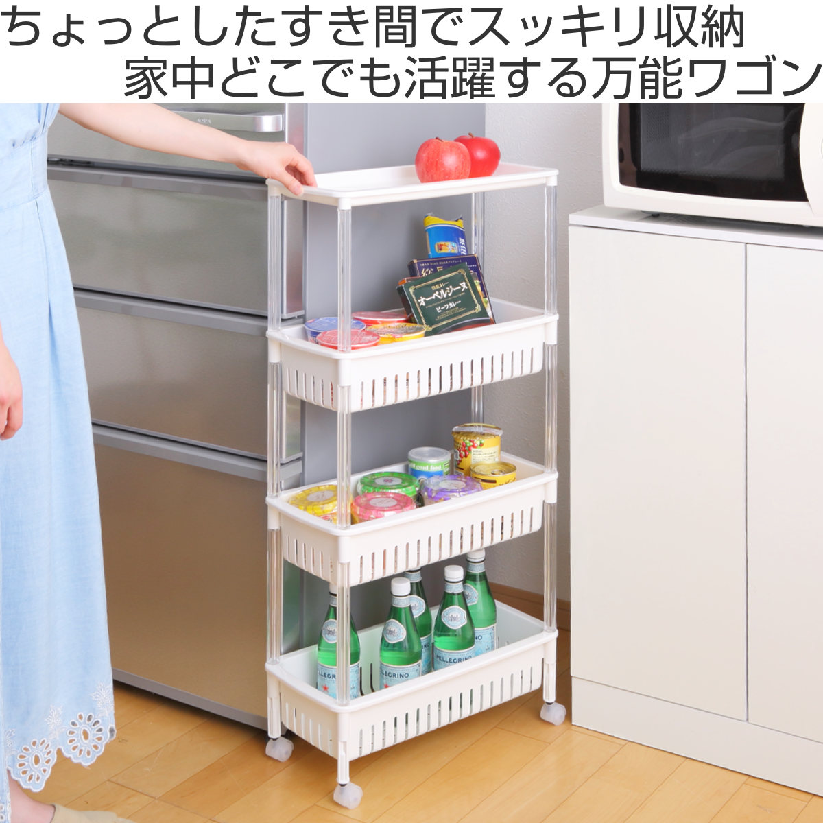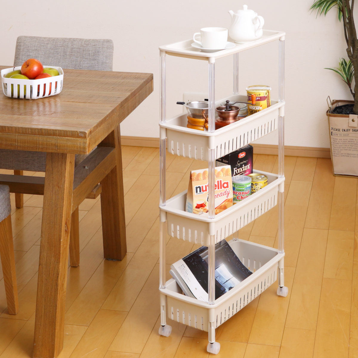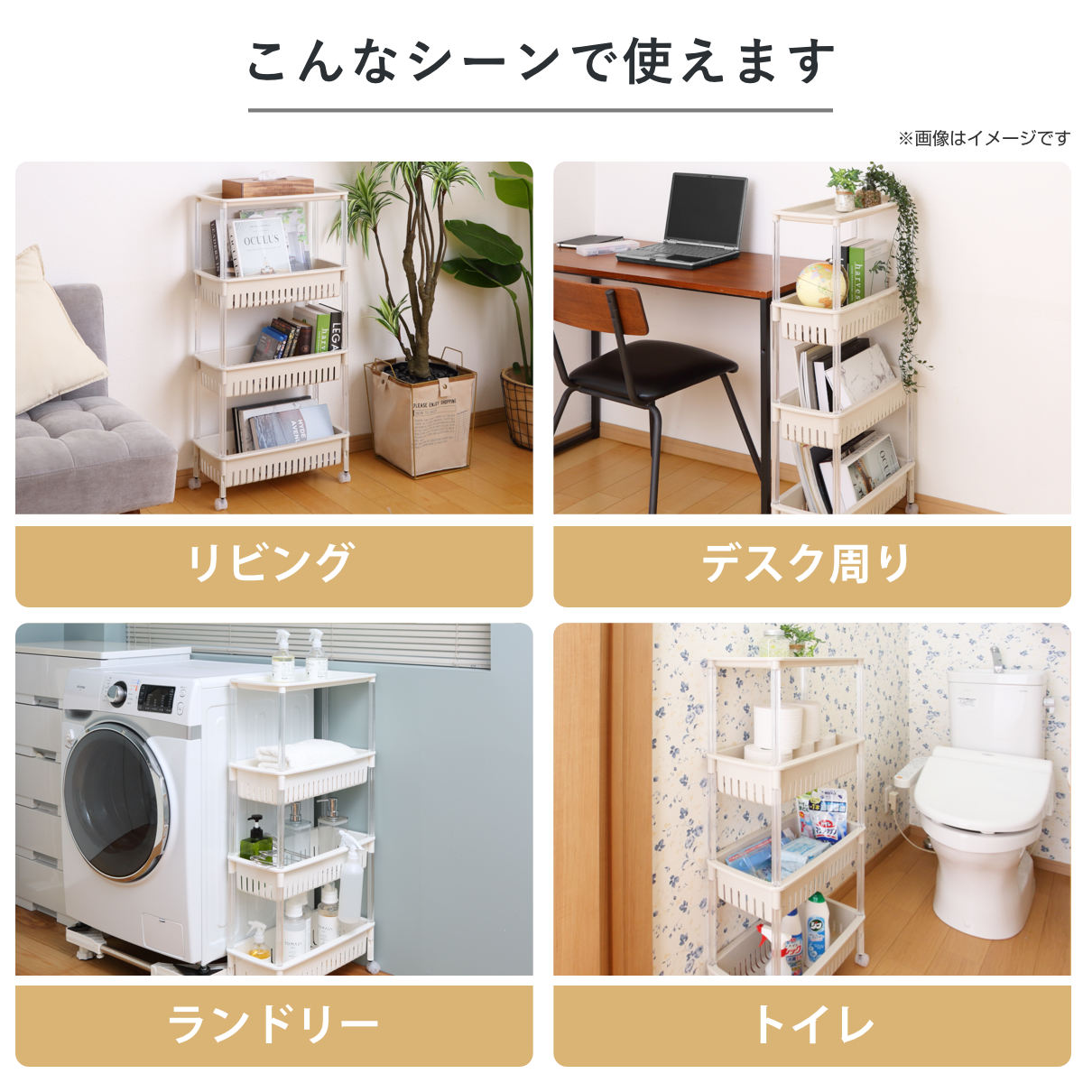 キッチンワゴン ルーチェワゴン 4段 幅22cm 奥行47cm 高さ94.7cm ( キャスター付き 天板付き キッチンストッカー 日本製 マルチワゴン キッチンラック ワゴン ラック 収納 ワゴン収納 バスケットワゴン キッチン 洗面所 四段 ) 【ベージュ】