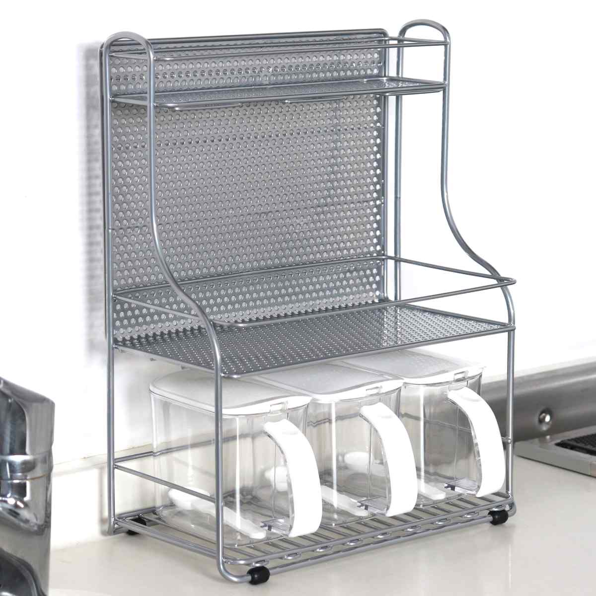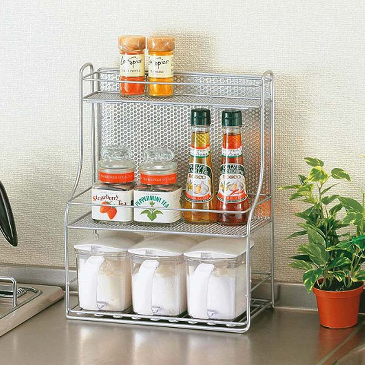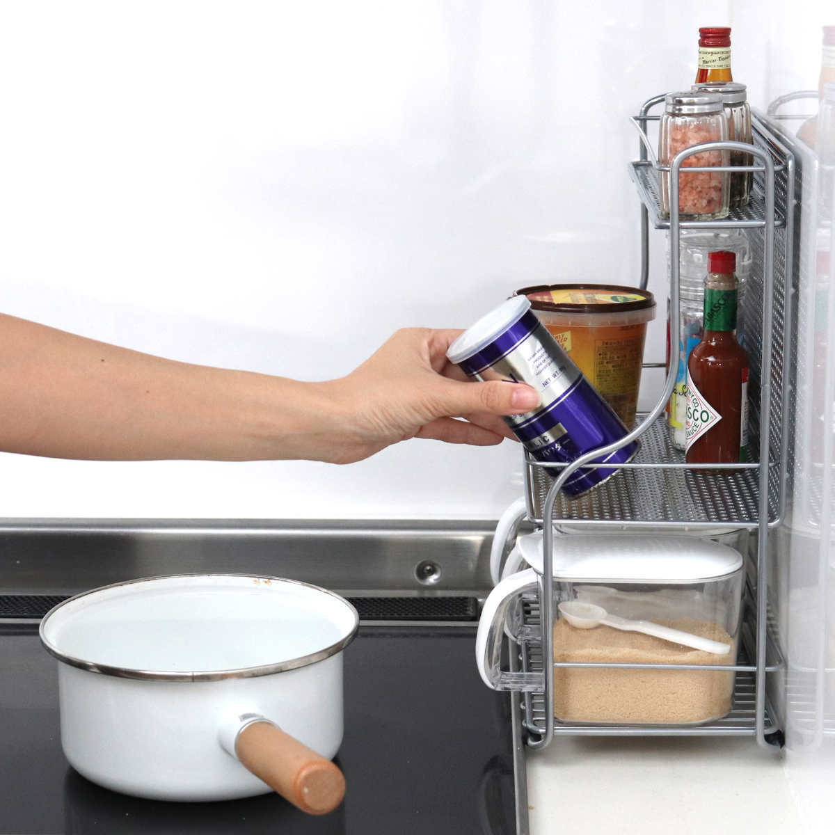 調味料ラック キッチンストレージ2 調味料スタンド 3段 ( スパイスラック キッチンラック ミニシェルフ 調味料ポット付き コンロ奥 コンロサイド キッチン収納 調味料 収納 棚 ラック スタンド コンロ周り 収納ラック シンクサイド )