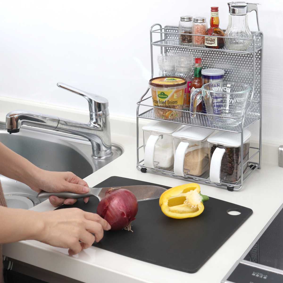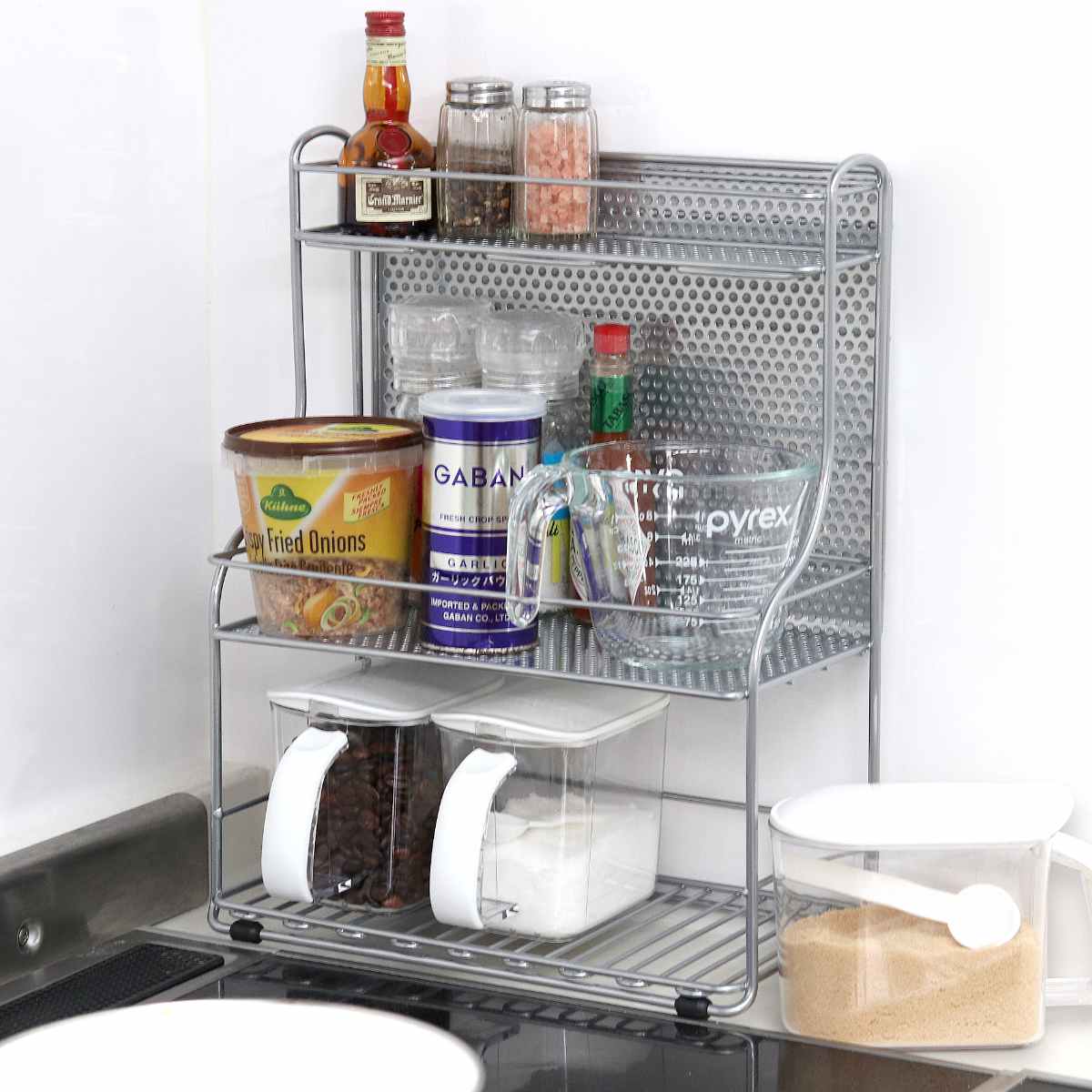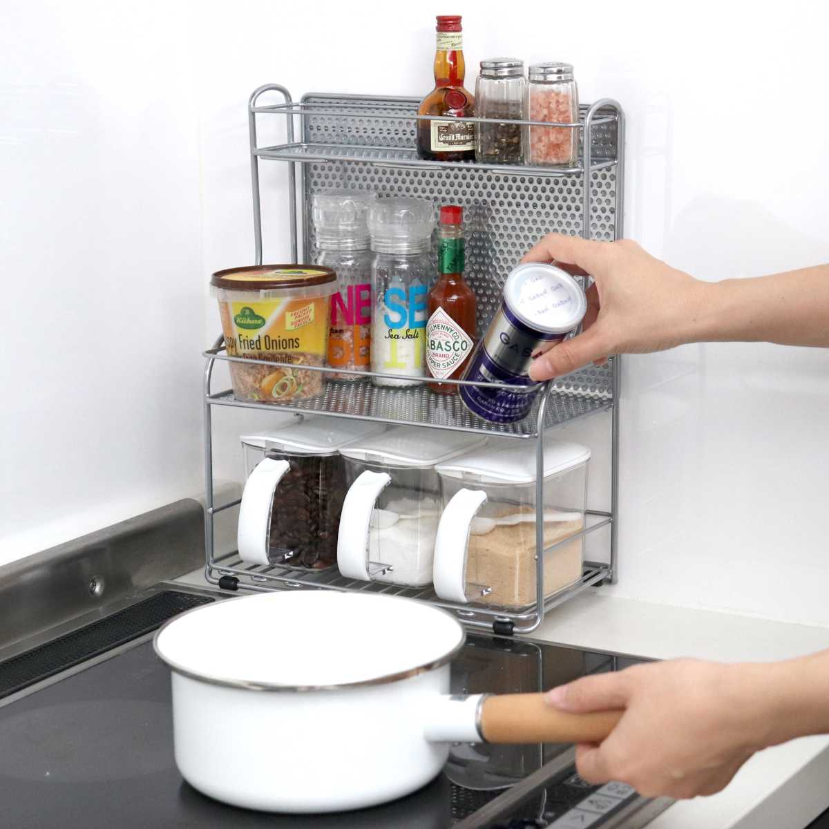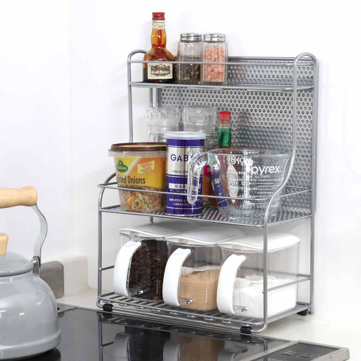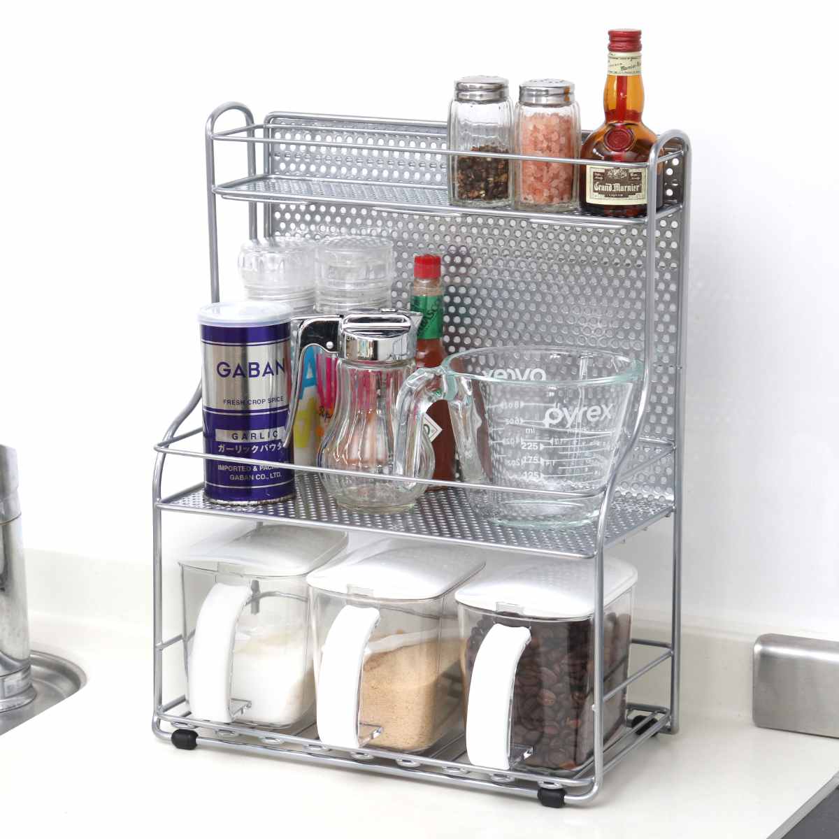 上段、中段はパンチング仕様となっており、調味料をしっかり支えながらも通気性に優れています。
