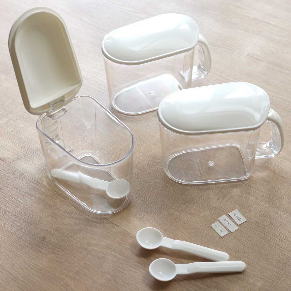 調味料ポットにはスプーンとシールが付いているので、塩や砂糖を入れてすぐに使えます。