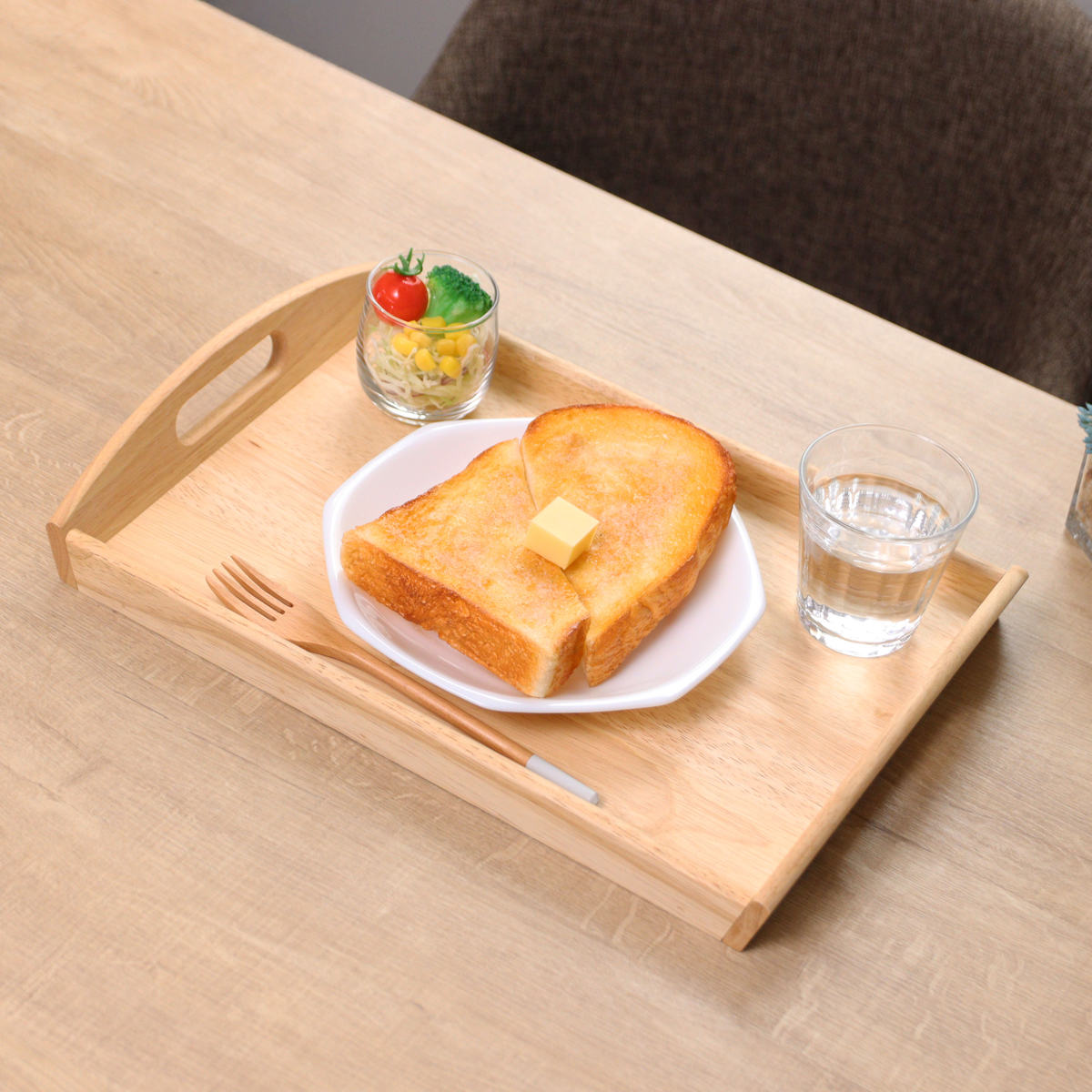 便利な持ち手付きなのでダイニングへの食事の持ち運びや、おやつやティータイムの持ち運びにも最適です。