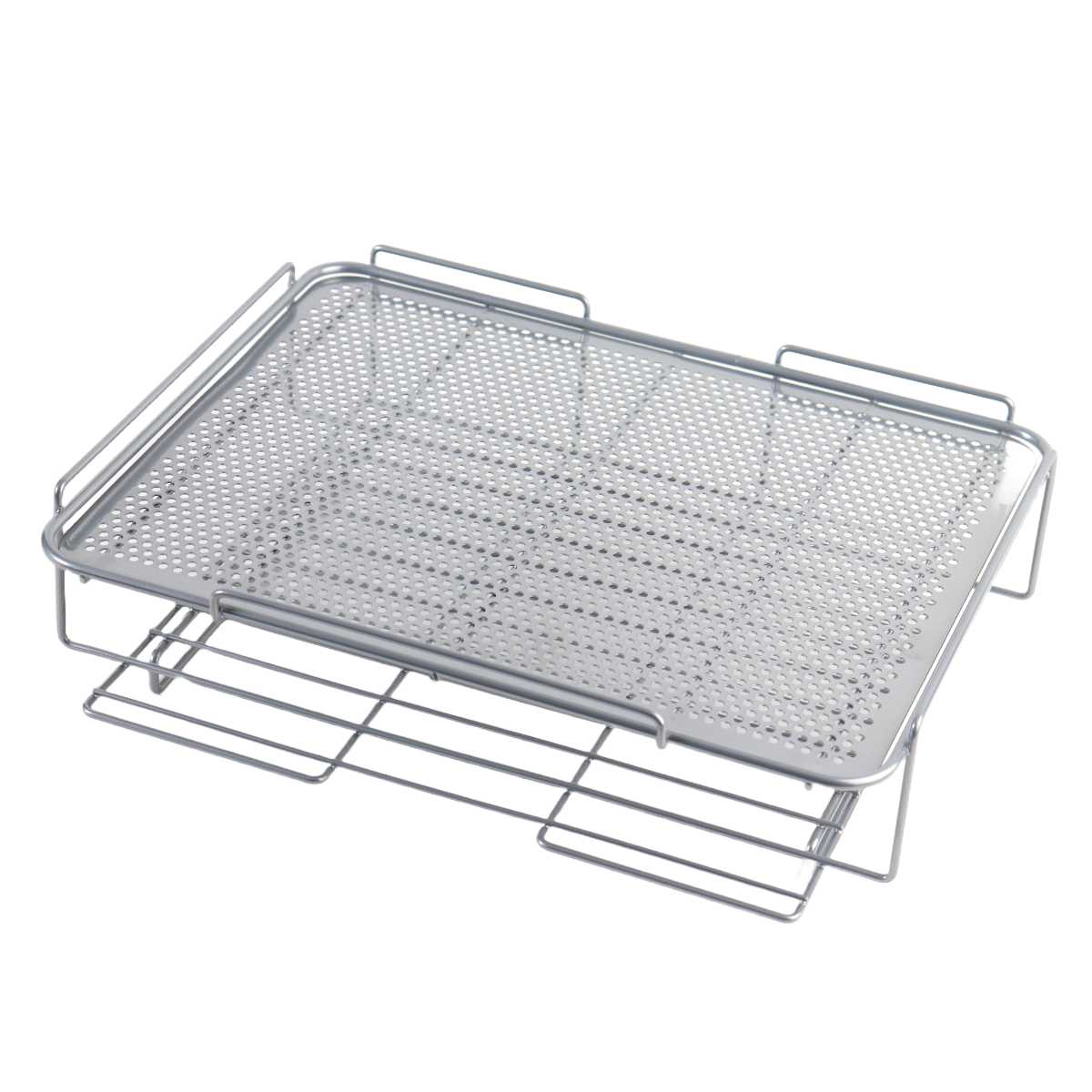 上段はパンチング、下段はメッシュ仕様で家電を置いても熱がこもりにくいです。