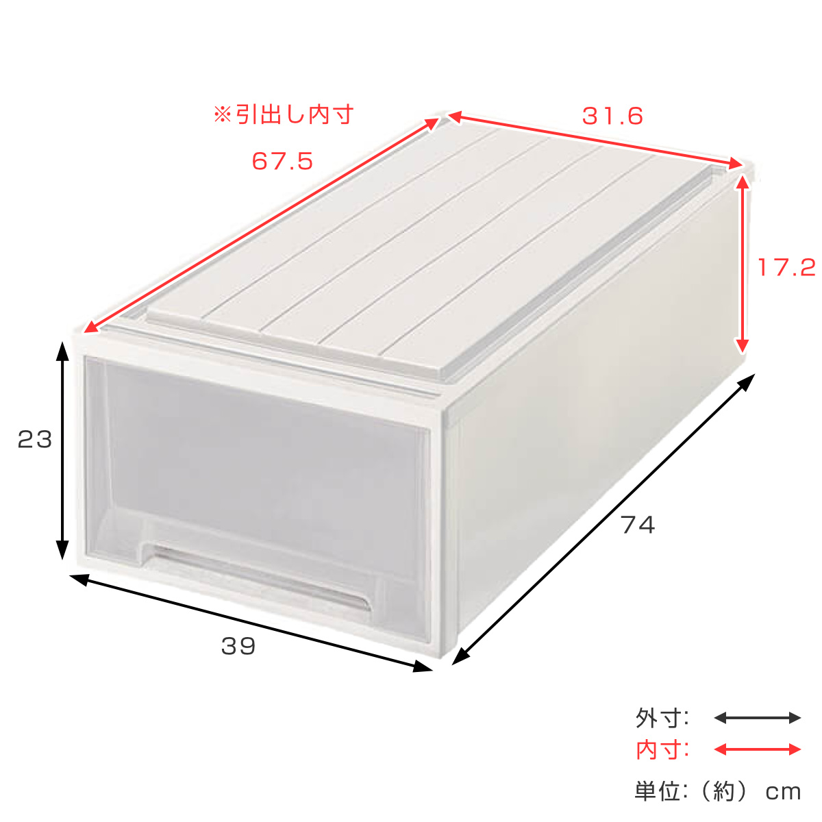 | サイズ | 約 幅39×奥行74×高さ23(cm) 引出内寸:約 幅31.6×奥行67.5×高さ17.2(cm) |