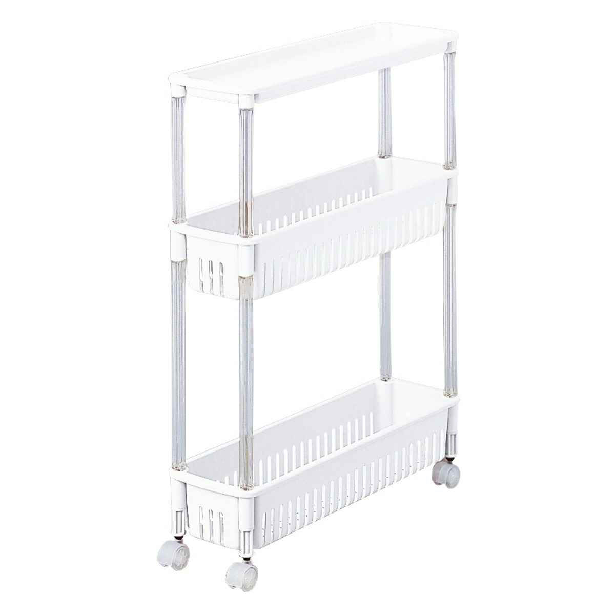 キッチンワゴン ルーチェワゴン 3段 幅15.2cm 奥行49.9cm 高さ65.4cm ( キャスター付き スリム 天板付き ストッカー 日本製 マルチワゴン ラック ワゴン 収納 ワゴン収納 バスケットワゴン 隙間収納 キッチン 洗面所 三段 すき間 ) 【ホワイト】