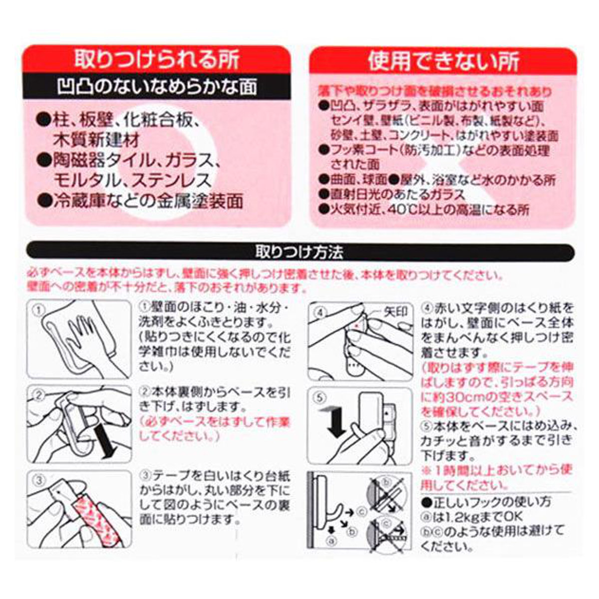 関連キーワード:白 ホワイト 色 便利 シンプル 引掛け はがせる 剥がせる きれいに剥がせる 跡が残らない あとが残らない