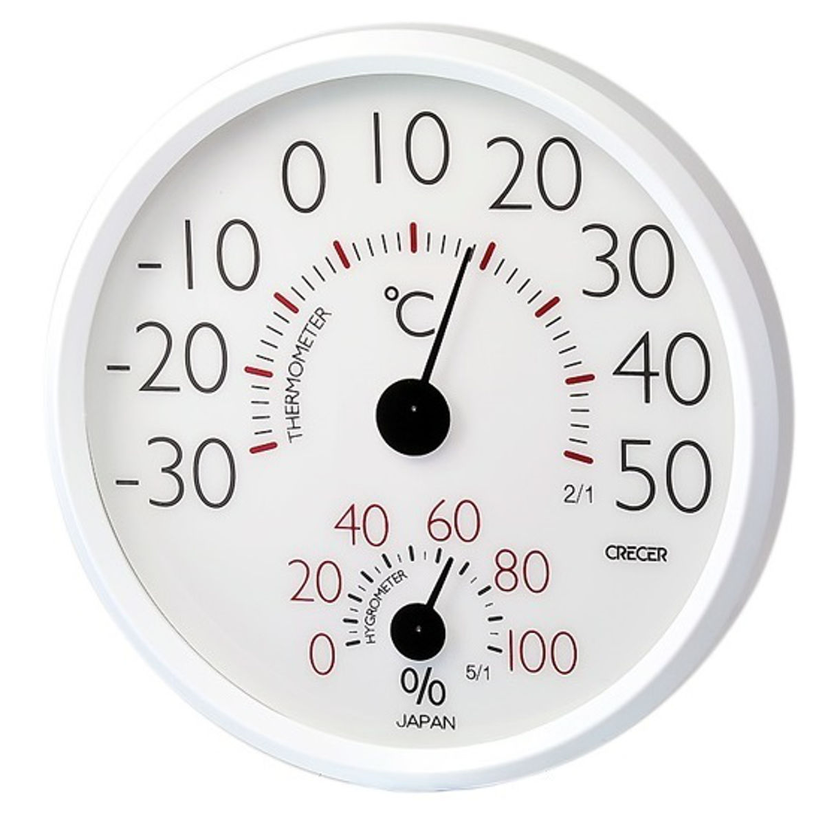 温湿度計 温度計 壁掛け 大工道具 日本製 ( アナログ温湿度計 湿度計 文字盤 大きい 見やすい オフィス 業務用 温度 湿度 測定器 温度湿度計 赤ちゃん 乾燥 ウイルス 熱中症 対策 ) 【ホワイト】