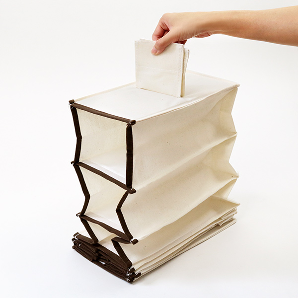 | 材質 | TC生地(表地:綿・ポリエステル、裏地:不織布) 芯材/上部:MDF、棚前部:天然木、底部:厚紙 |