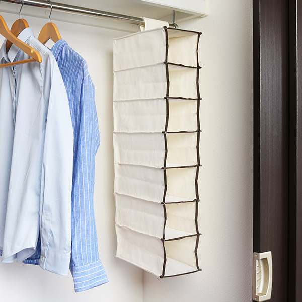 吊り下げ収納 7段 ミニ スモールラック クローゼット収納 ( クローゼット 吊下げ収納 スリム 幅15cm 布 不織布 吊り下げ 吊下げ 収納 小物収納 タオル ハンカチ ネクタイ )