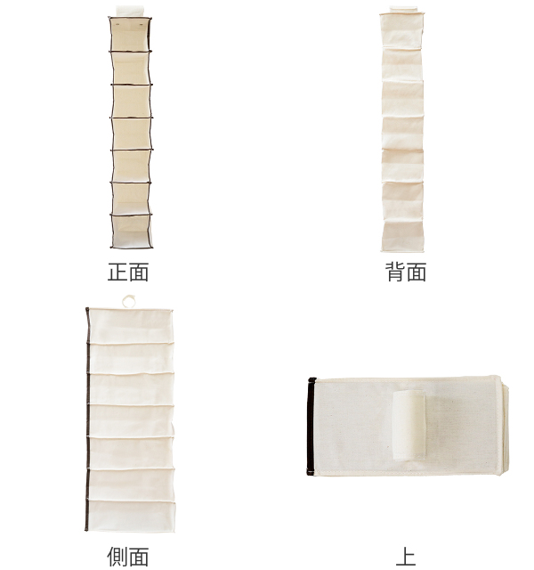 通気性の良いメッシュ素材を使用しているので、湿気がこもらず、クローゼットの中に吊り下げても安心です。