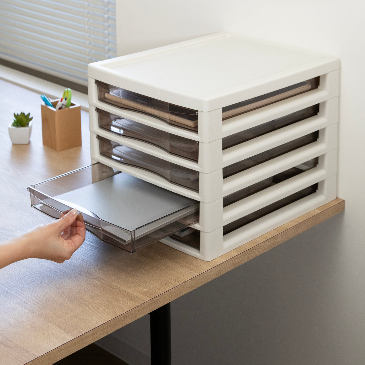 文房具や書類などで散らかりがちなデスクを、引出し収納1つですっきり整理整頓することができます。ご家庭だけでなく、オフィスでも使いやすいシンプルなデザインのレターケースです。