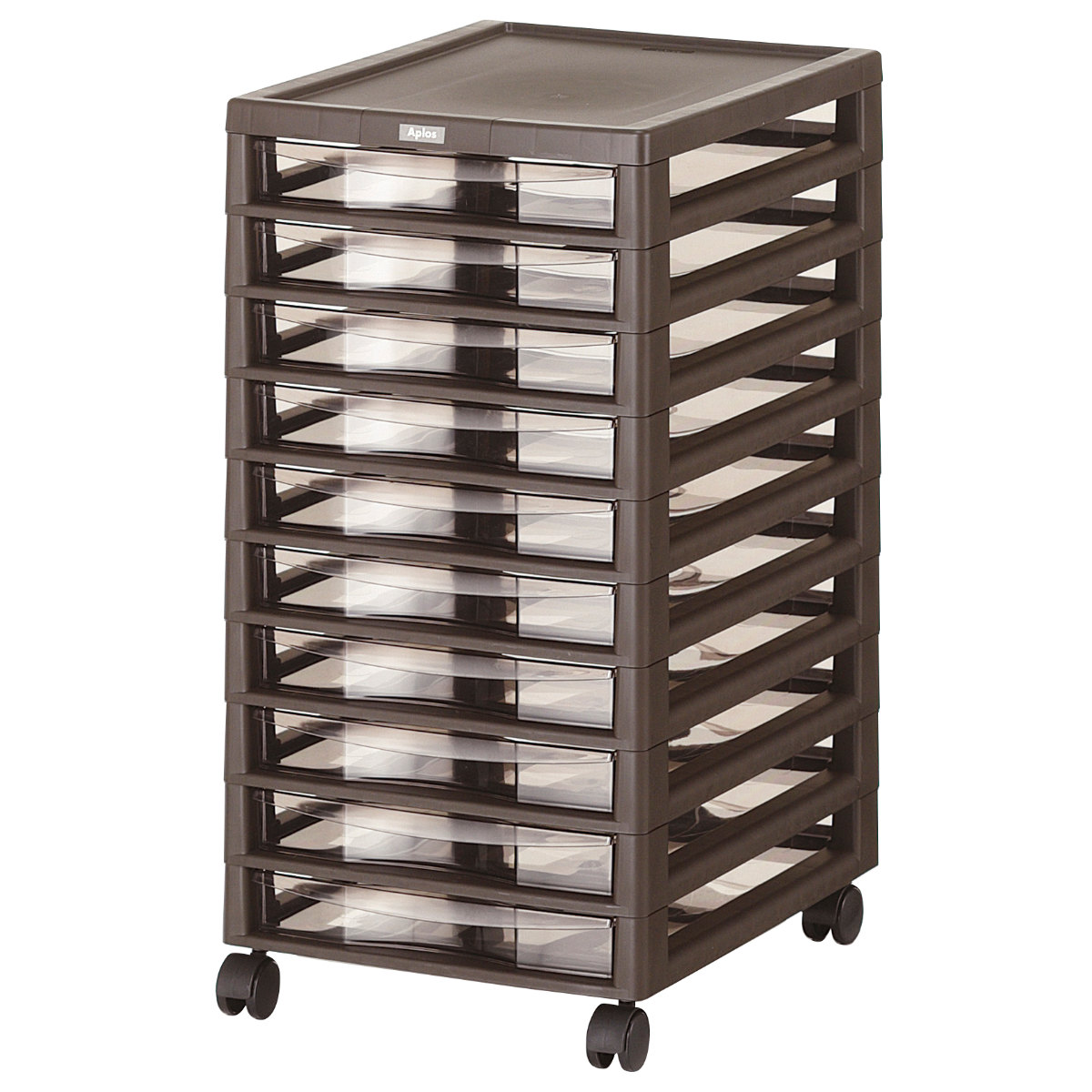 書類ケース フロアケース アプロス B4 浅型 10段 幅32.3×奥行40.6×高さ64.2cm 同色2個セット ( レターケース 引き出し 書類 収納ケース 収納 デスク収納 サイドチェスト 透明 ケース 引出し プリント 書類収納 ) 【ダークブラウン】