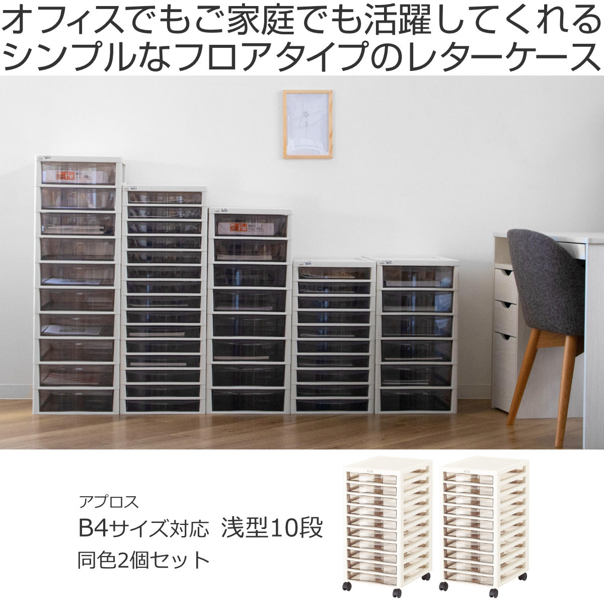 書類ケース フロアケース アプロス B4 浅型 10段 幅32.3×奥行40.6×高さ64.2cm 同色2個セット ( レターケース 引き出し 書類 収納ケース 収納 デスク収納 サイドチェスト 透明 ケース 引出し プリント 書類収納 ) 【アイボリー】